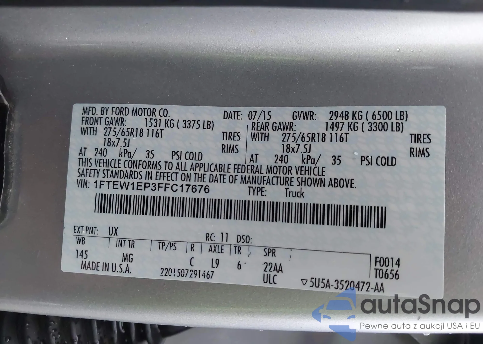 LOT: 42688259 VIN: 1FTEW1EP3FFC17676