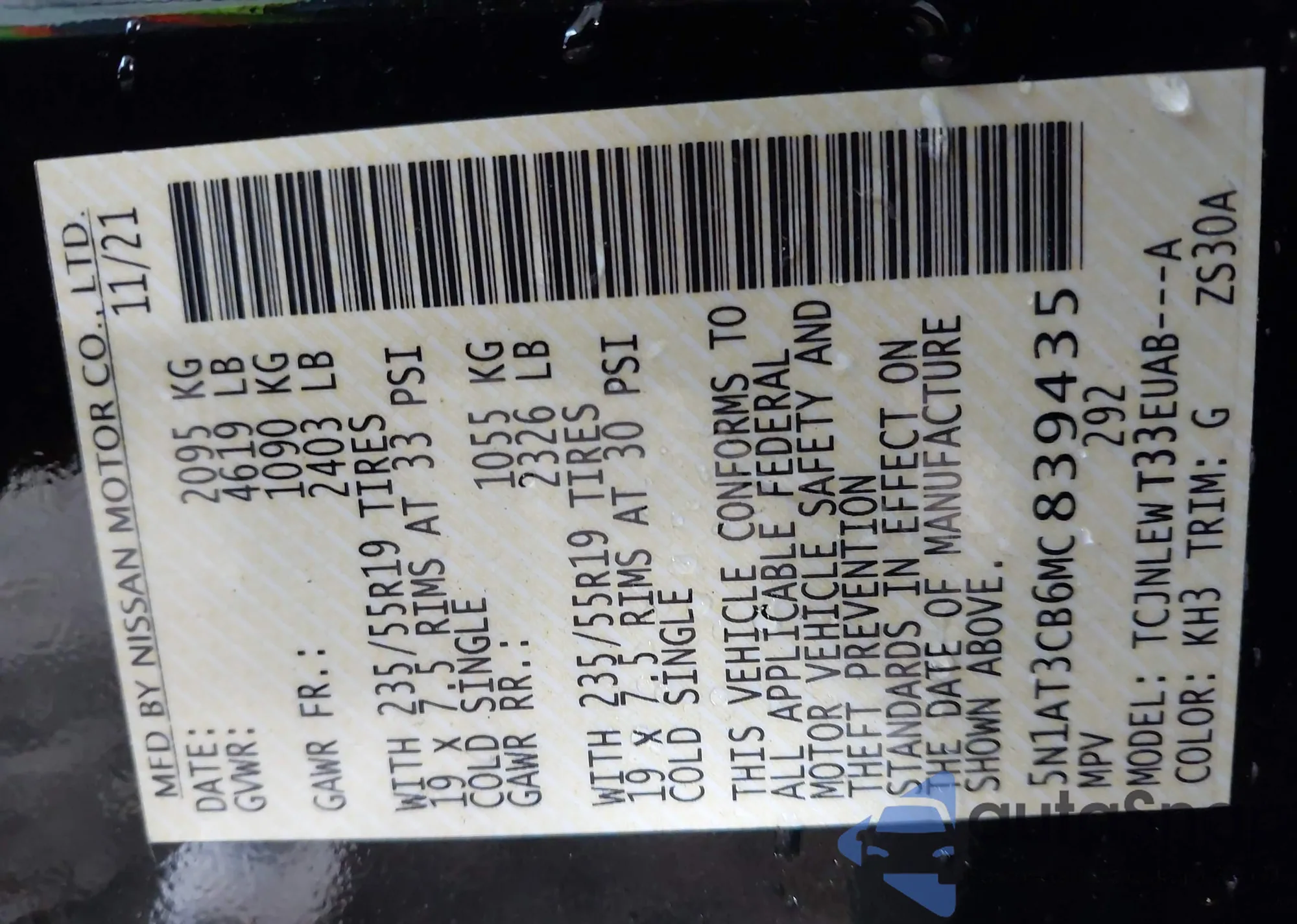 • VIN 5N1AT3CB6MC839435