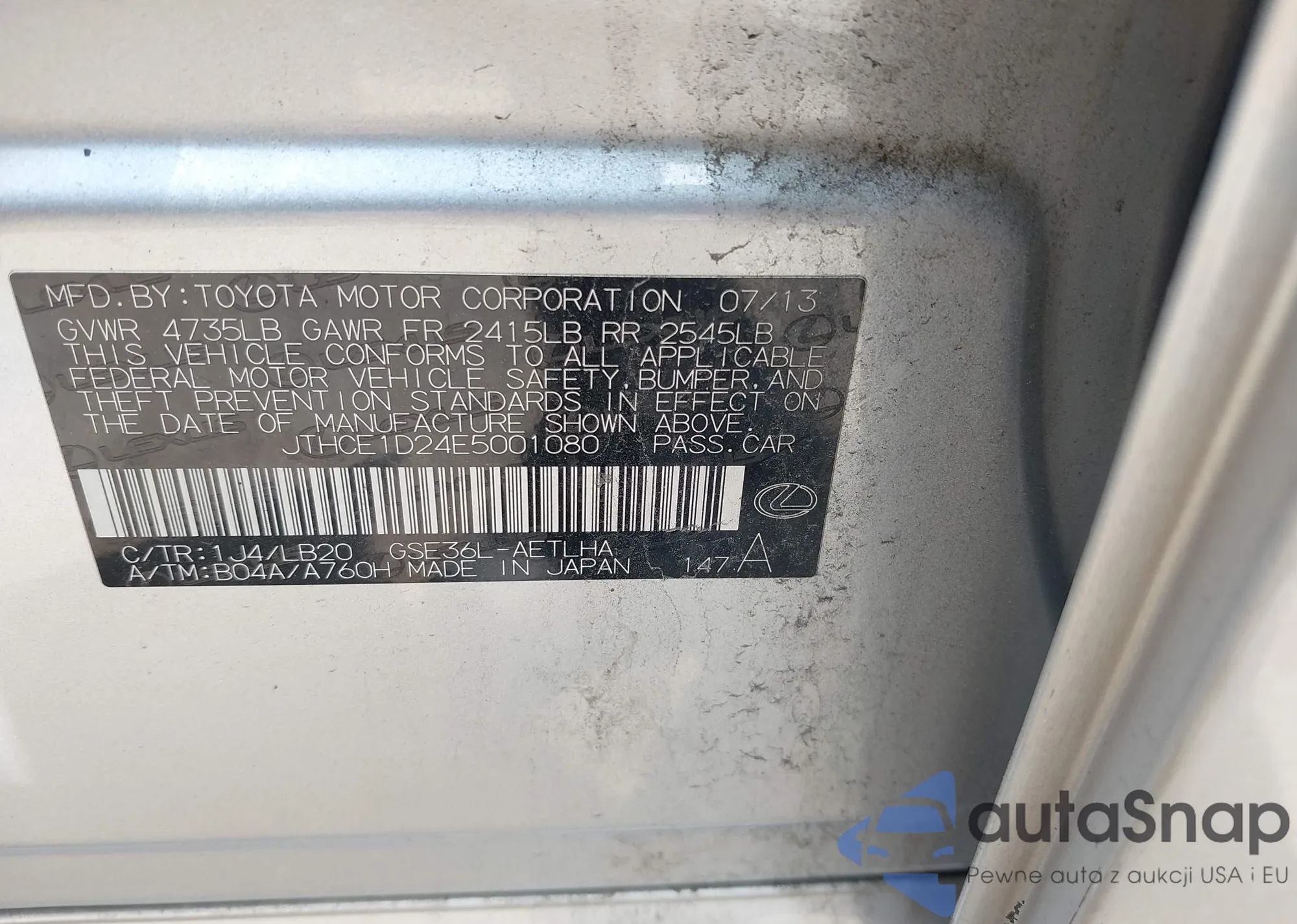 • VIN JTHCE1D24E5001080
