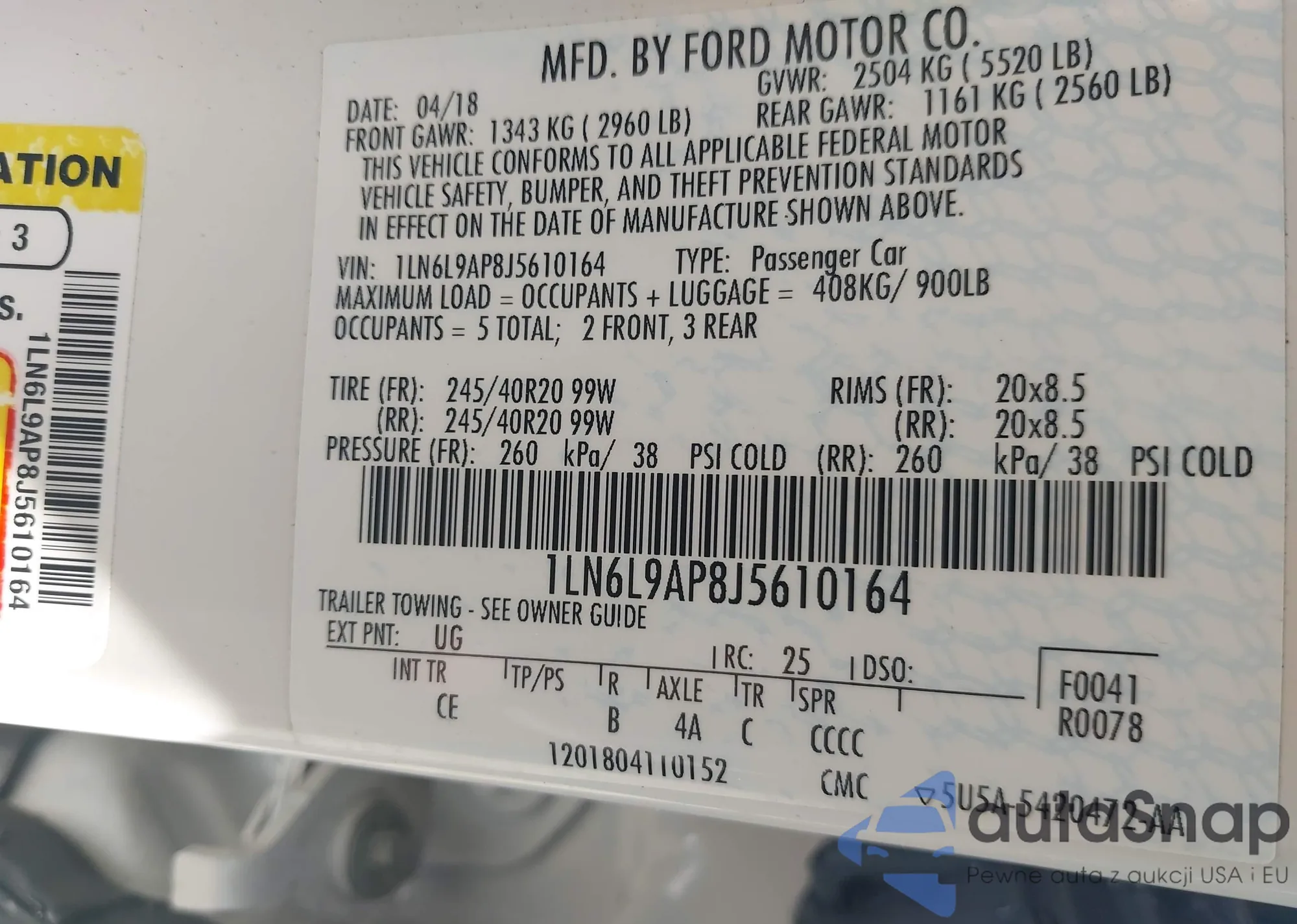 • VIN 1LN6L9AP8J5610164