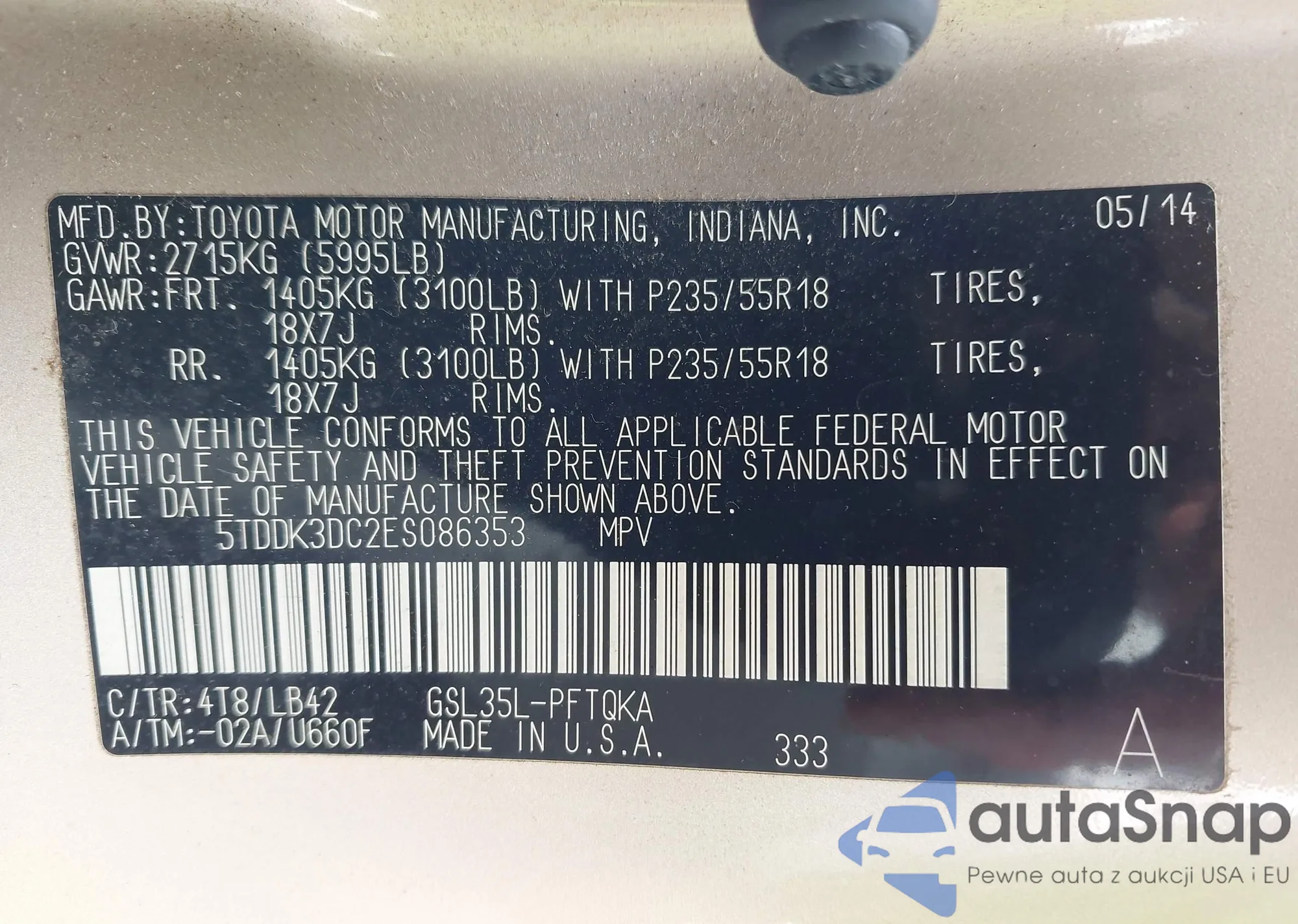 • VIN 5TDDK3DC2ES086353