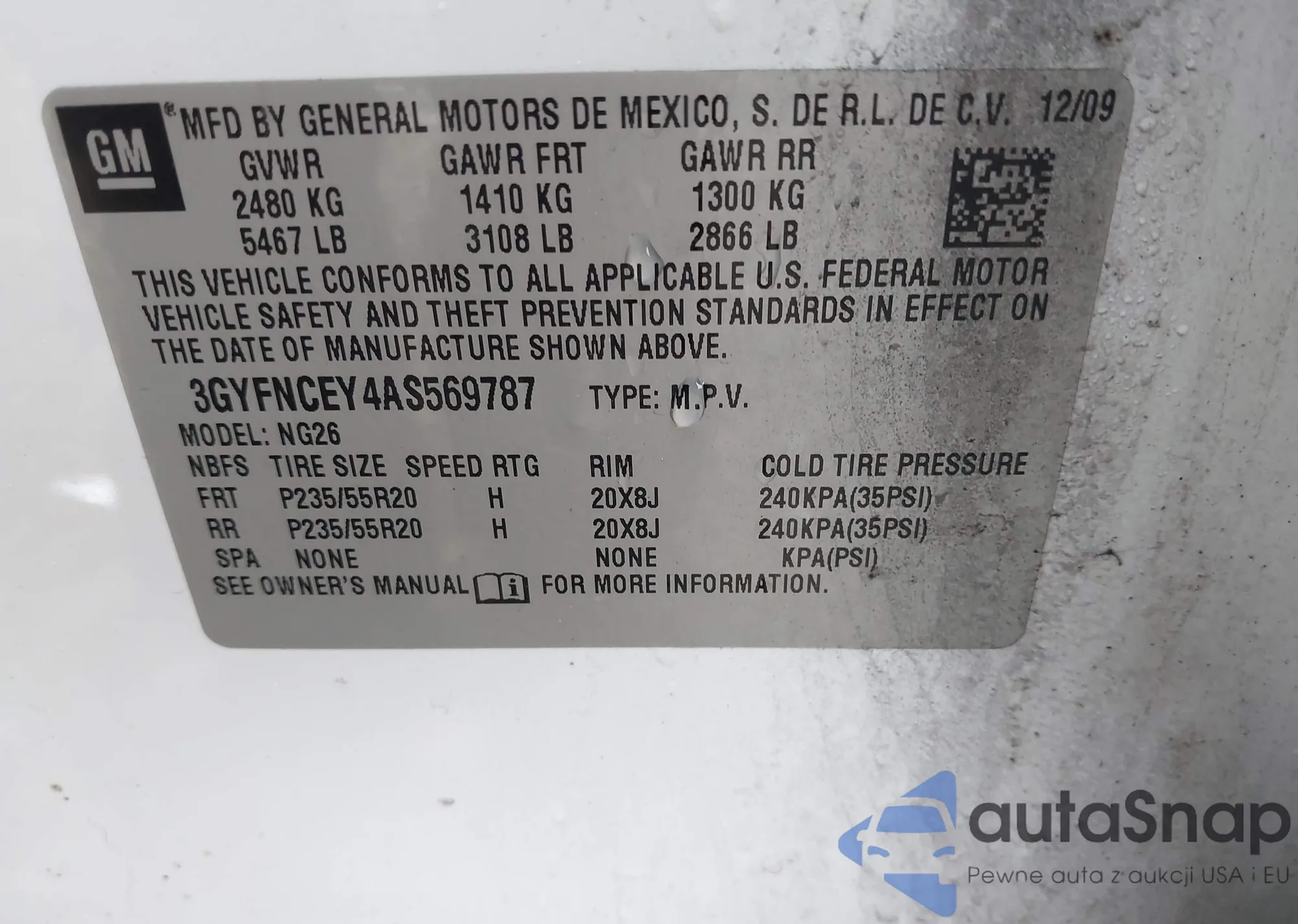 LOT: 42524167 VIN: 3GYFNCEY4AS569787