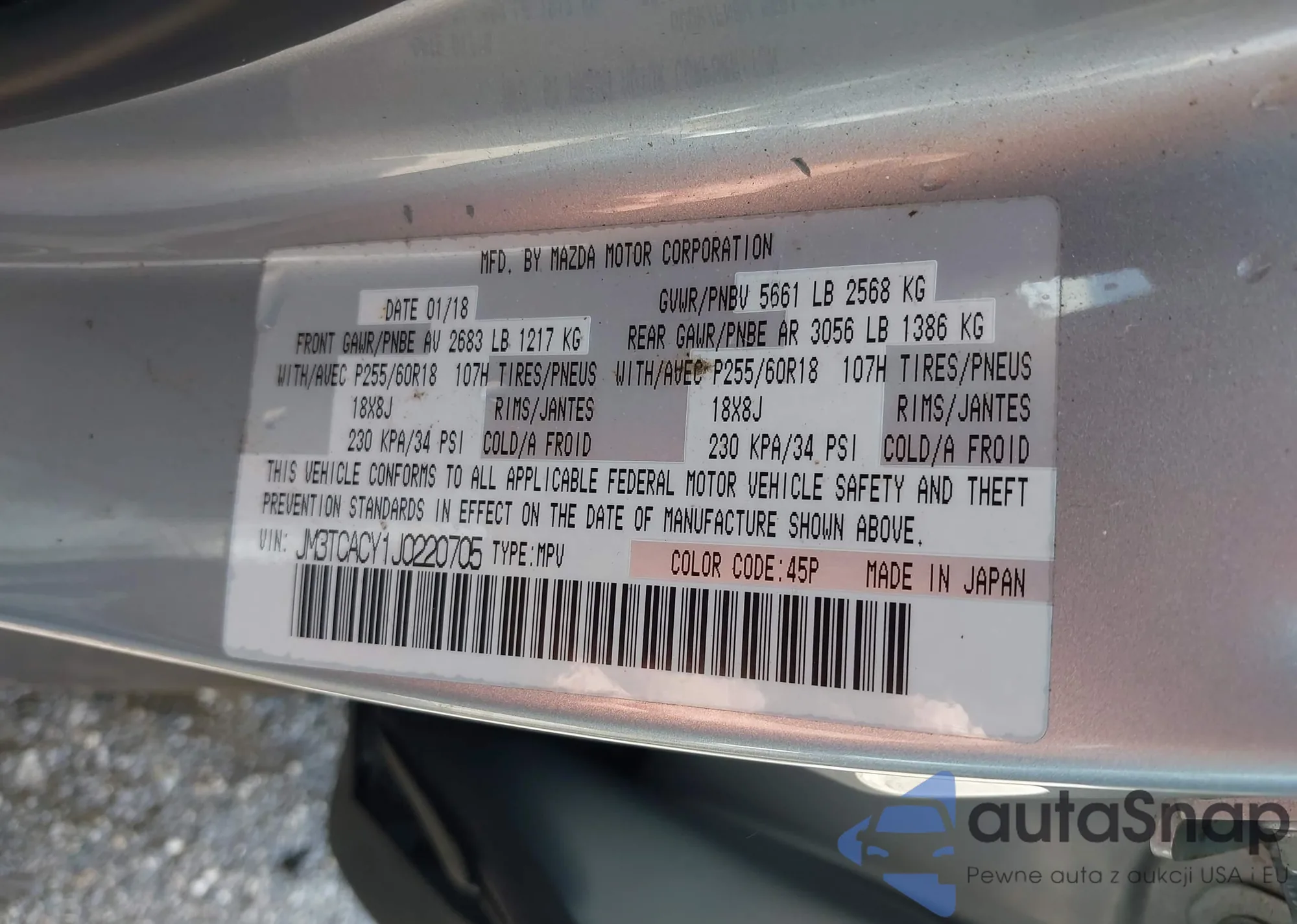 • VIN JM3TCACY1J0220705