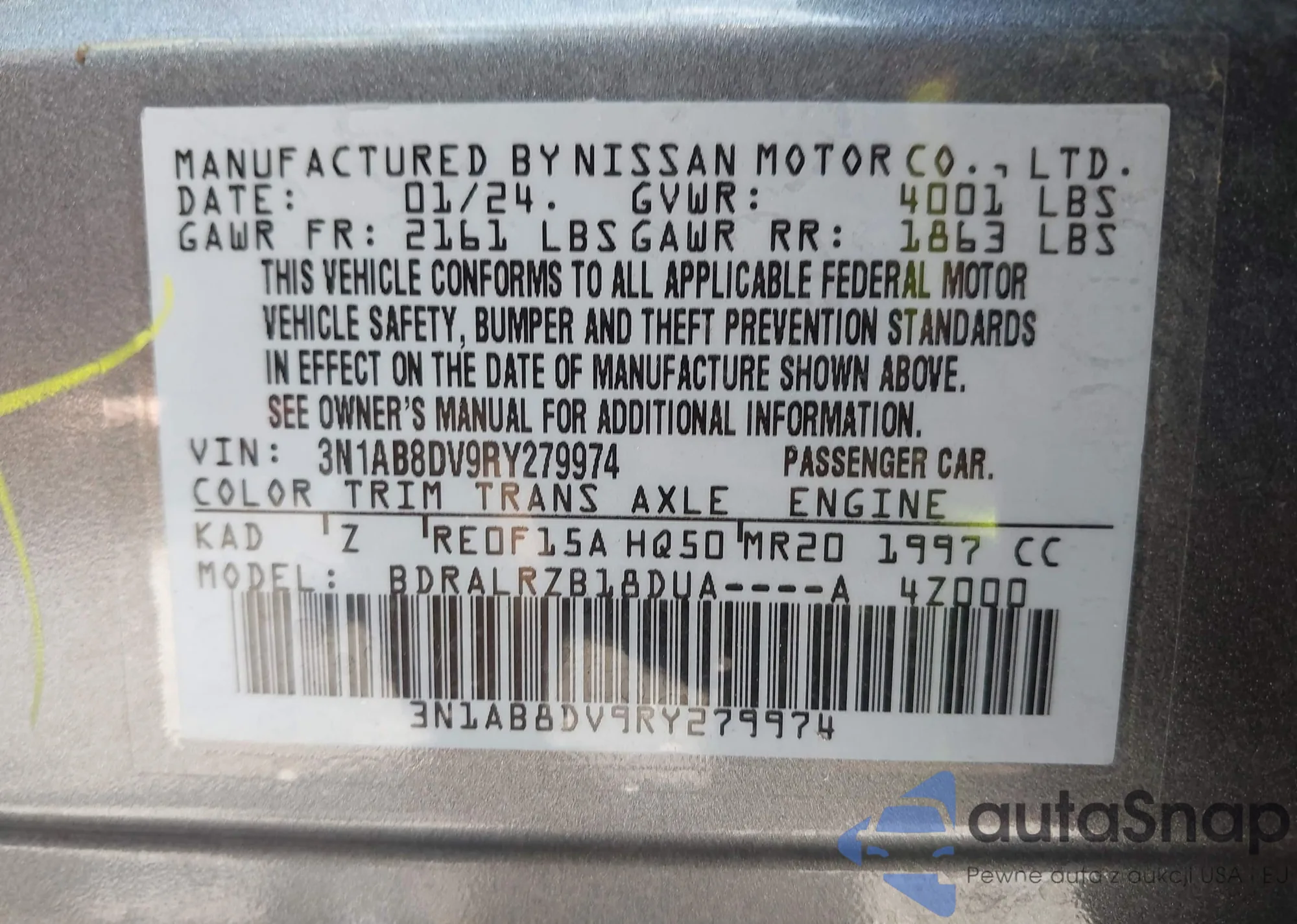• VIN 3N1AB8DV9RY279974