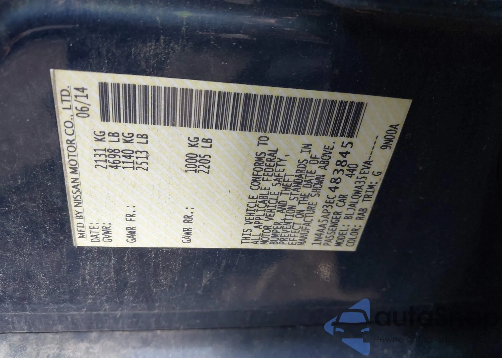 • VIN 1N4AA5AP3EC483845