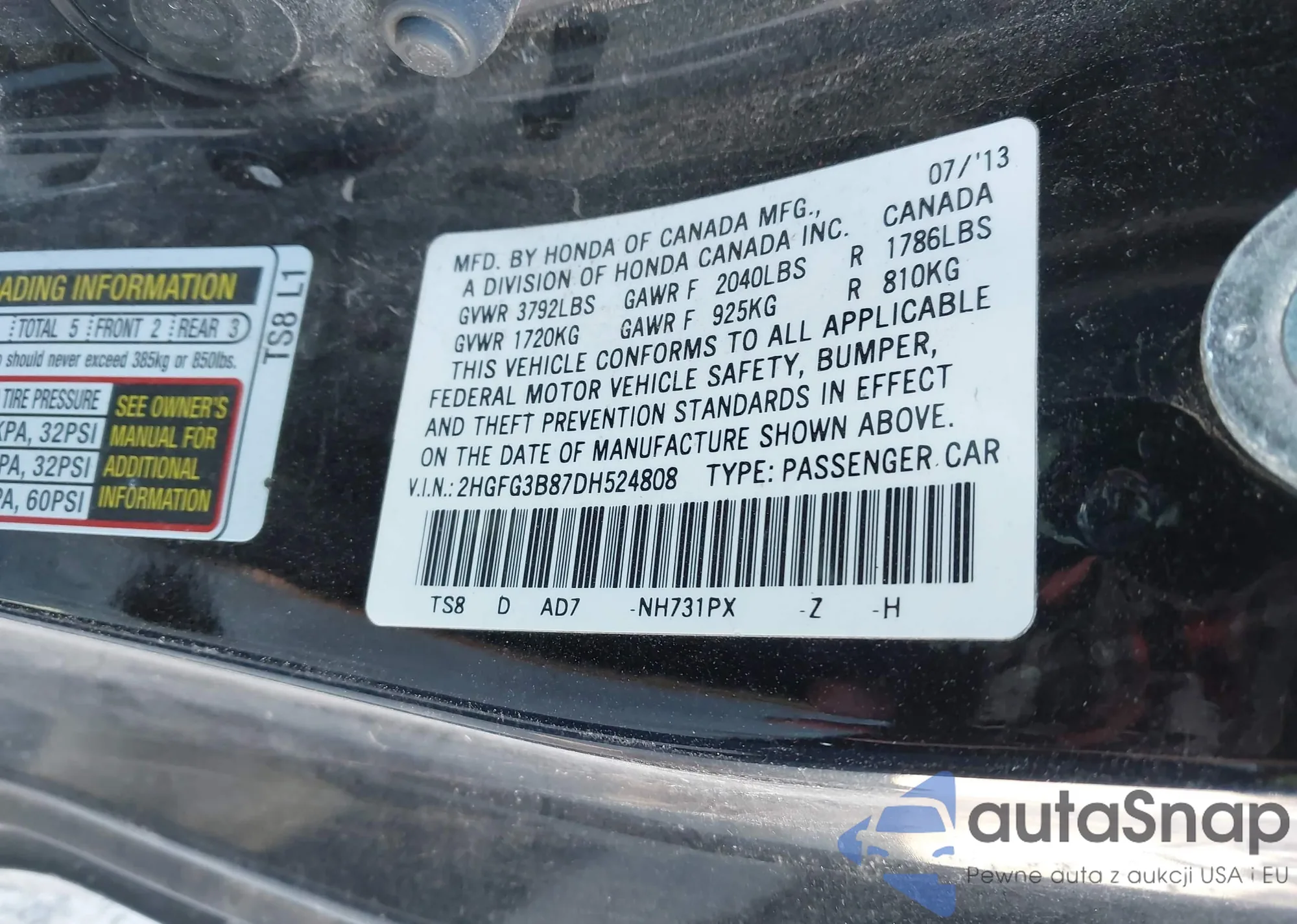 • VIN 2HGFG3B87DH524808
