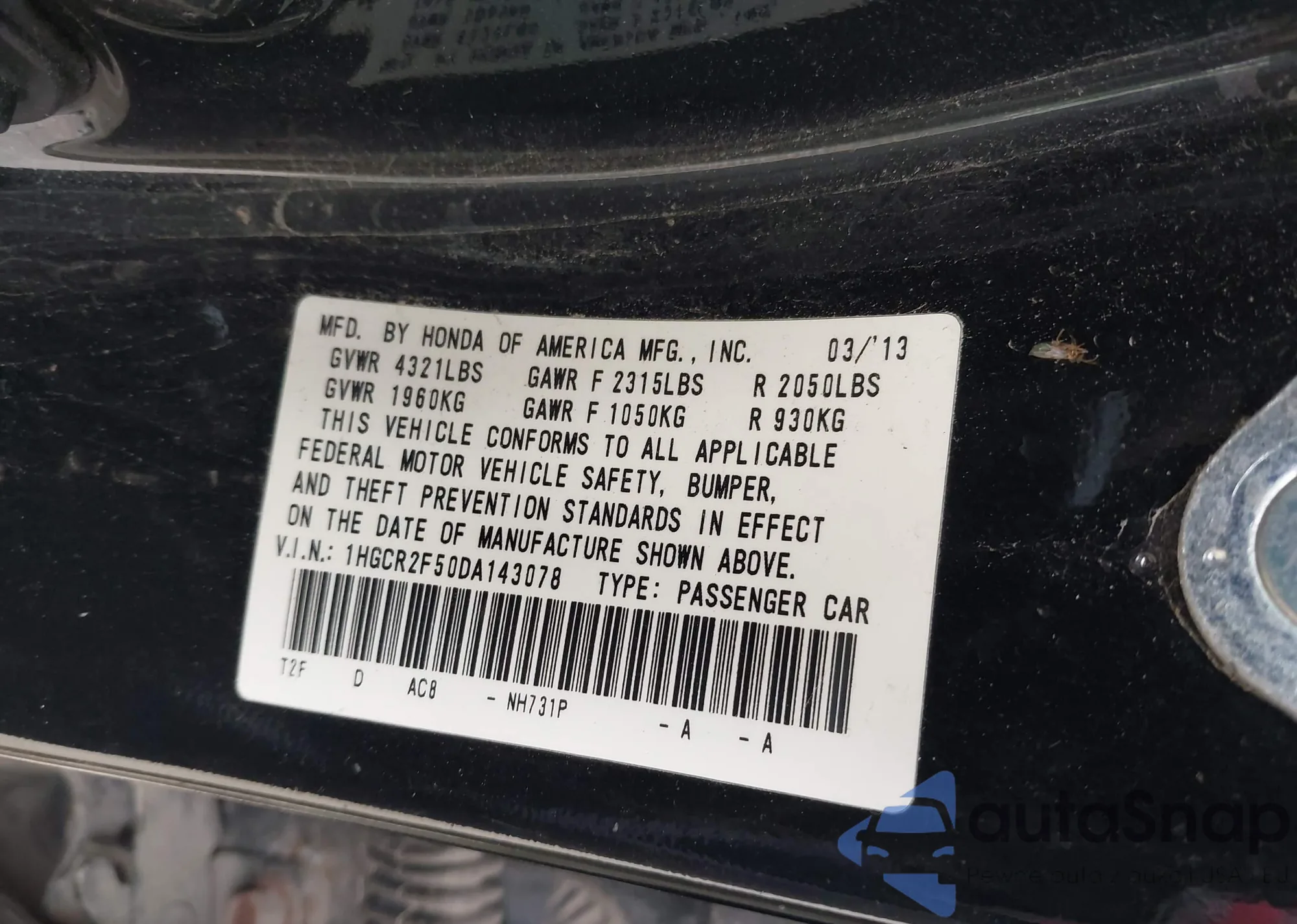 LOT: 41024661 VIN: 2HGFG3B87DH524808