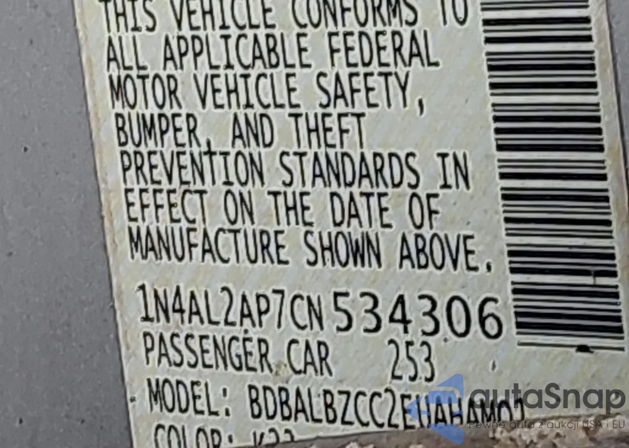 • VIN 1N4AL2AP7CN534306