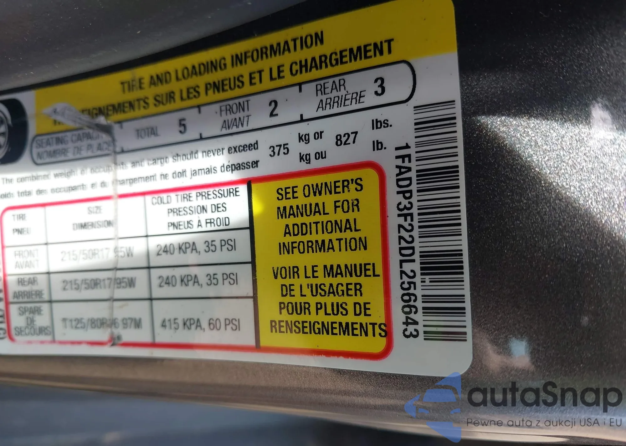 LOT: 42202673 VIN: 1FADP3F22DL256643