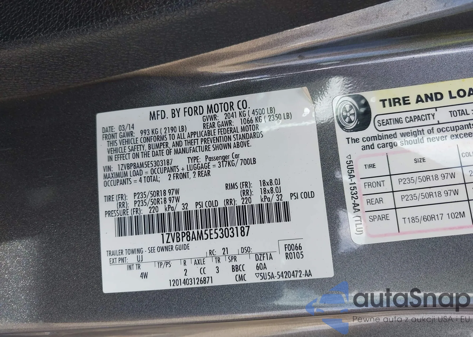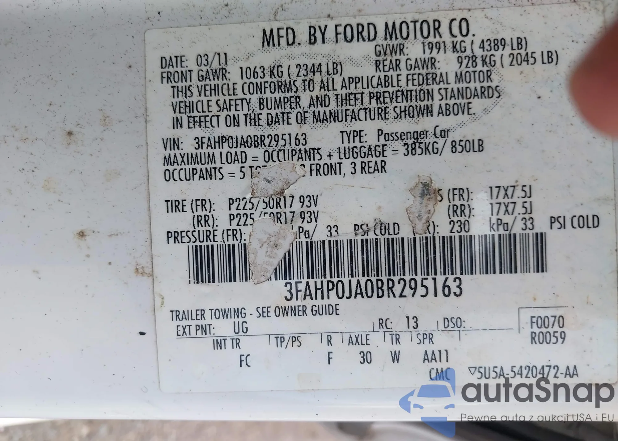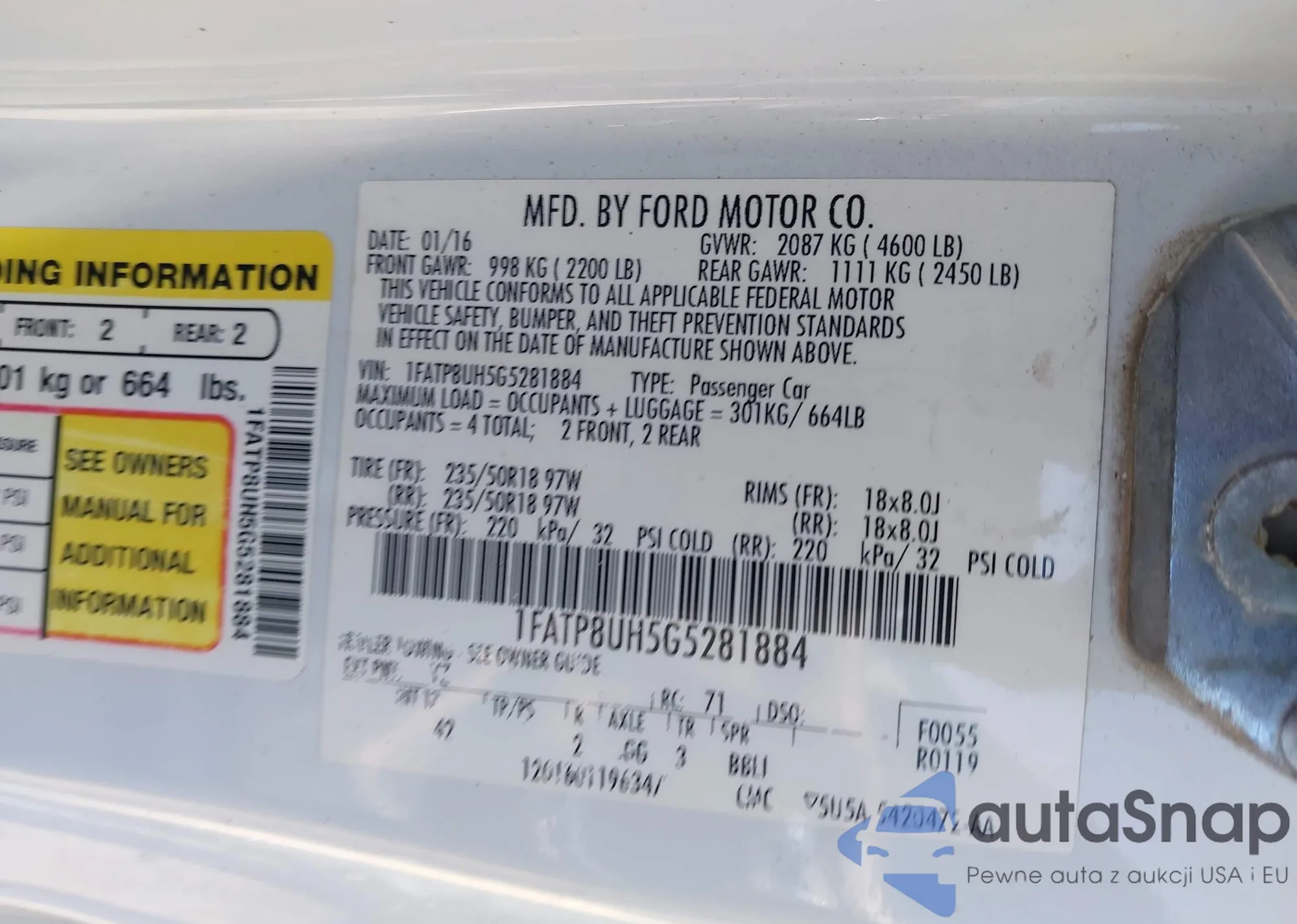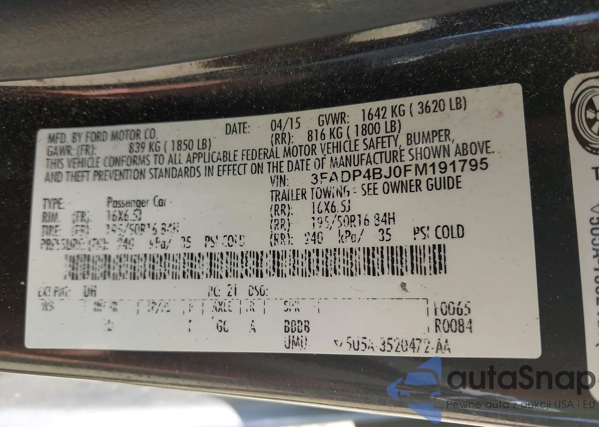 • VIN 1FADP5AU4DL557953