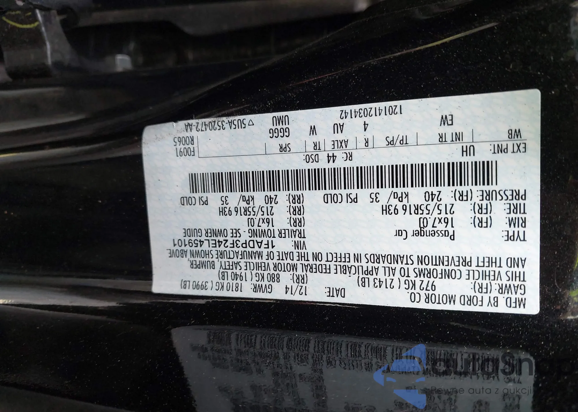 LOT: 42712633 VIN: 1FADP3F24EL459101