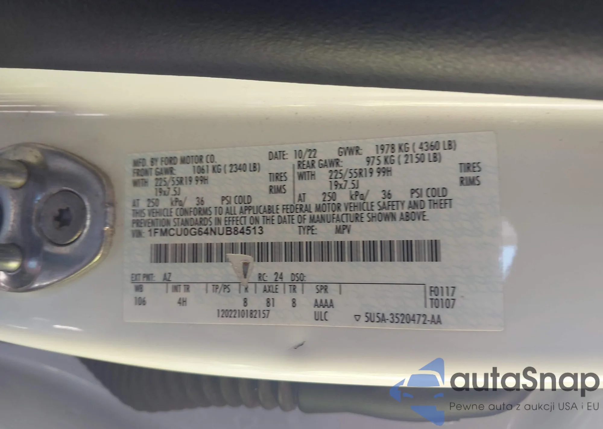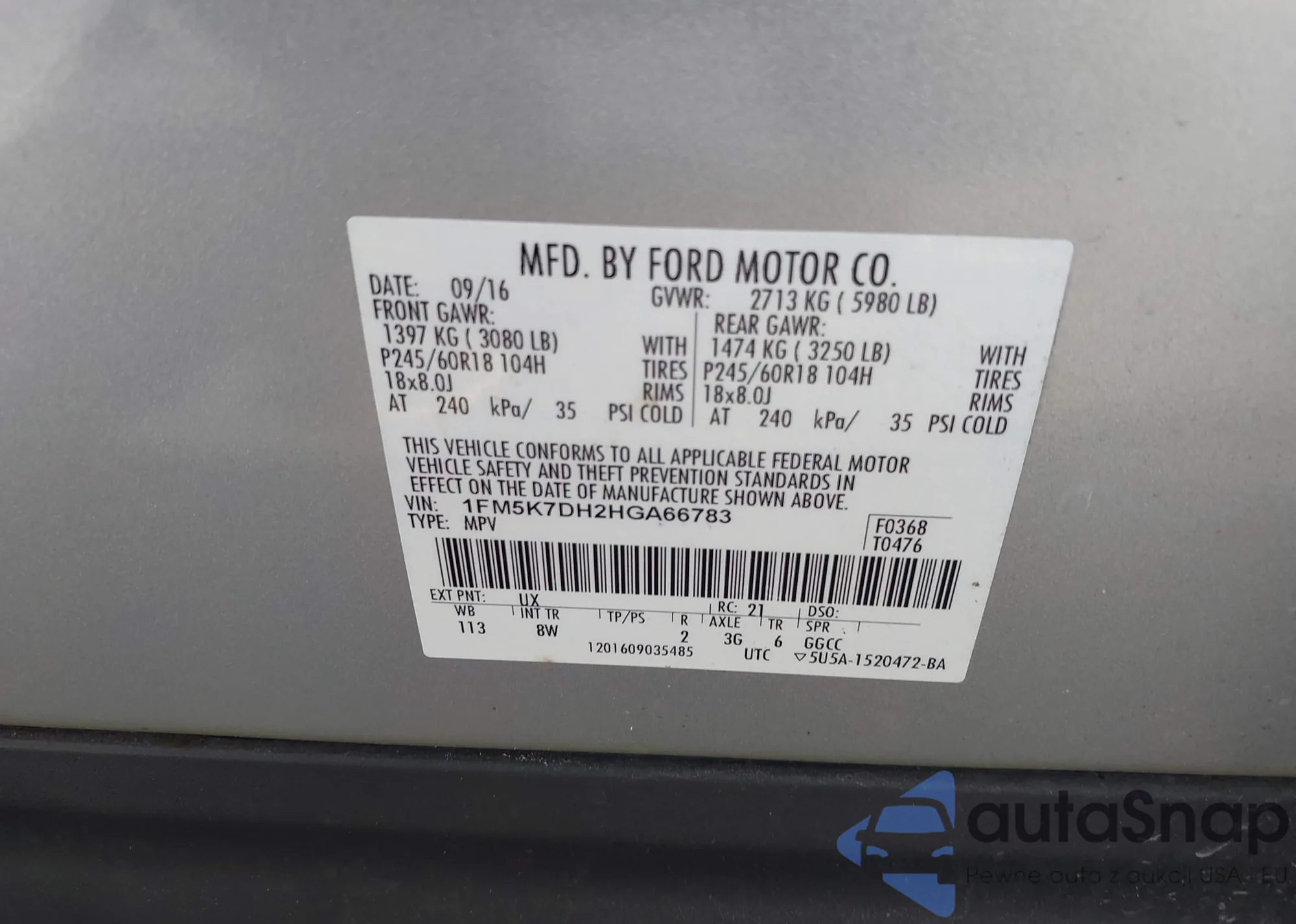 • VIN 1FMCU9GX8GUB16683