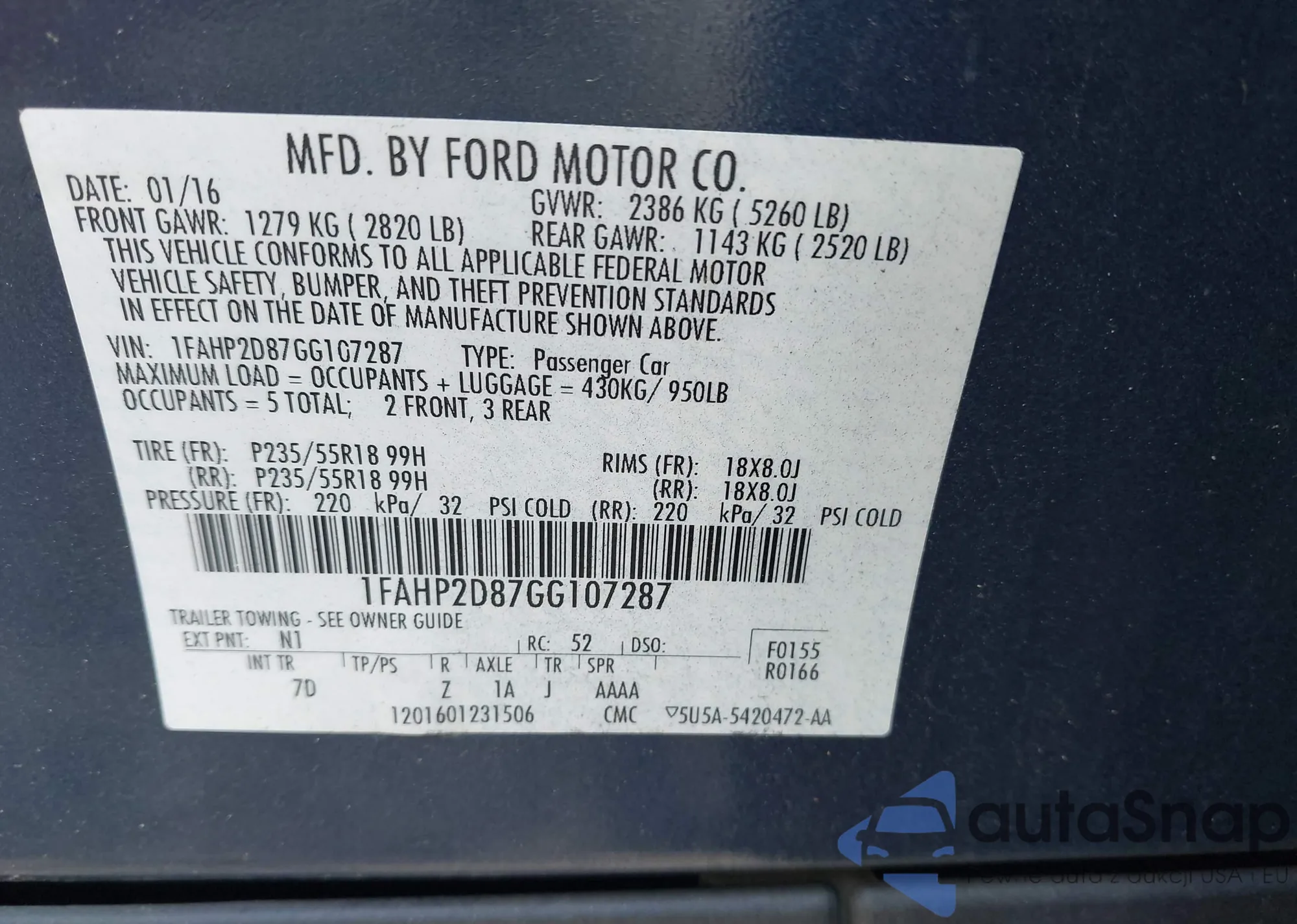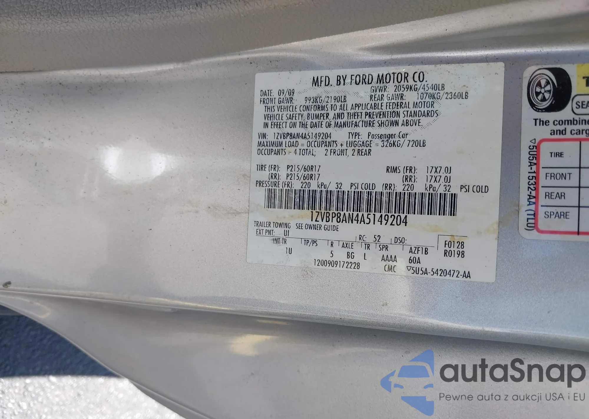 LOT: 42533283 VIN: 1ZVBP8AN4A5149204