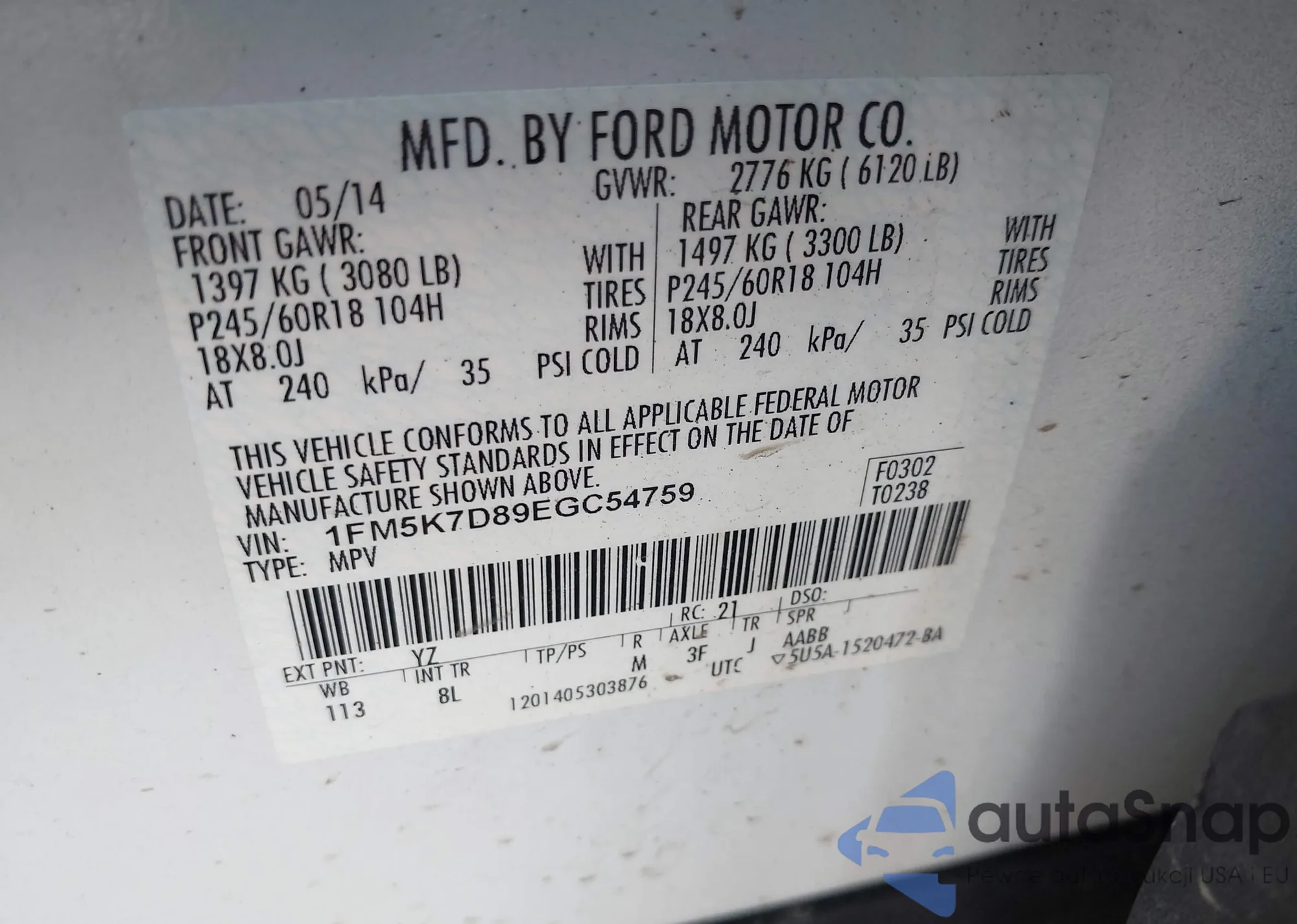 • VIN 1FM5K7D89EGC54759