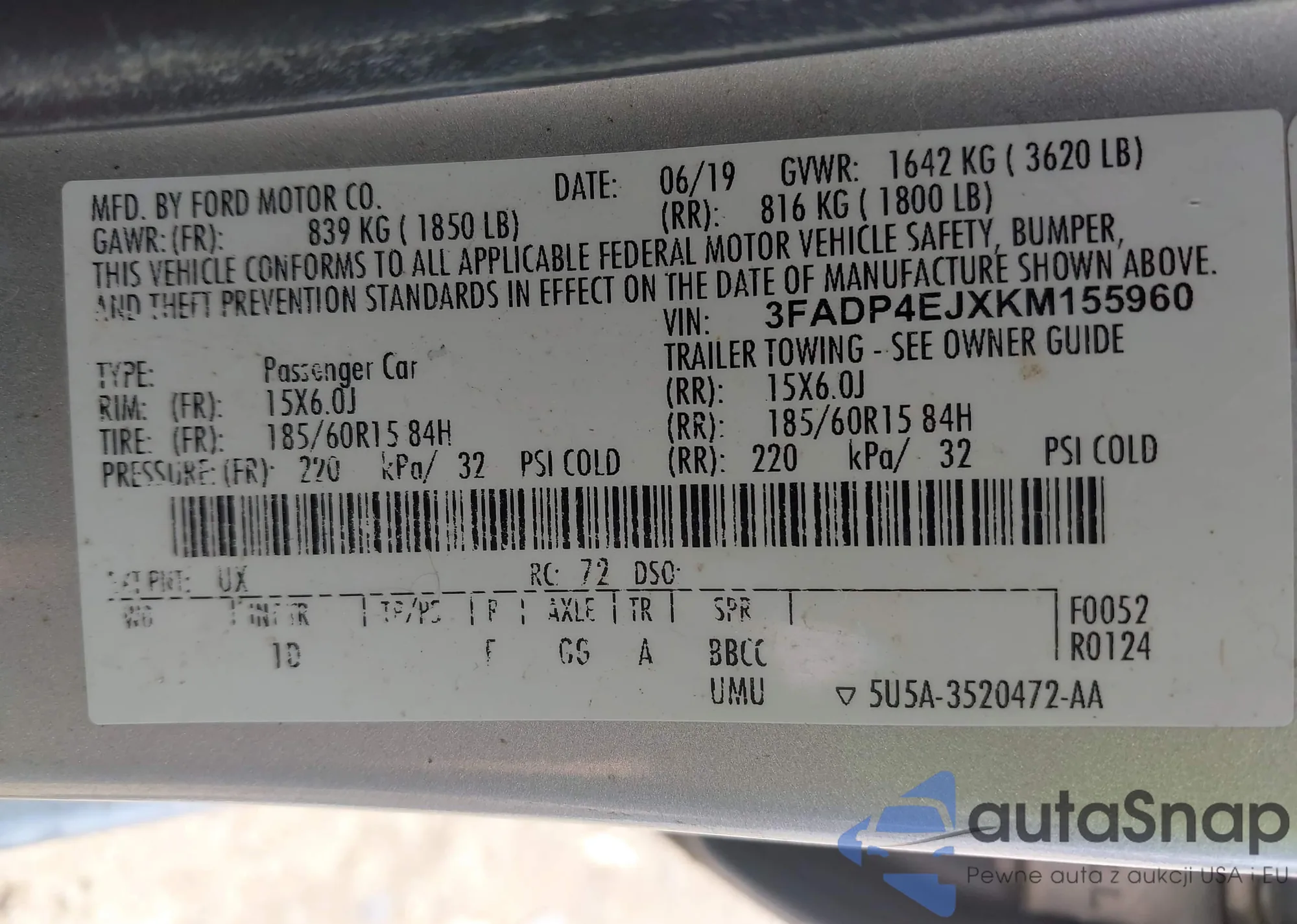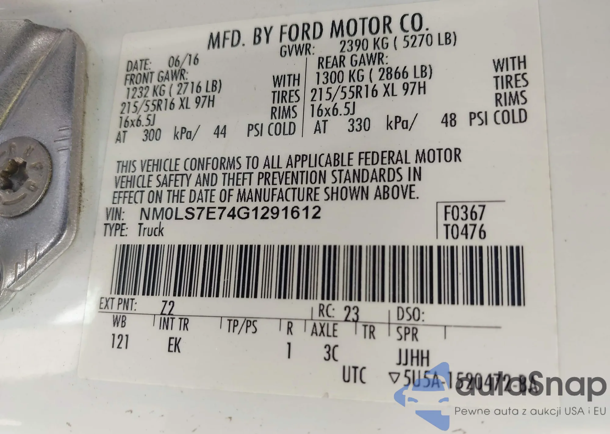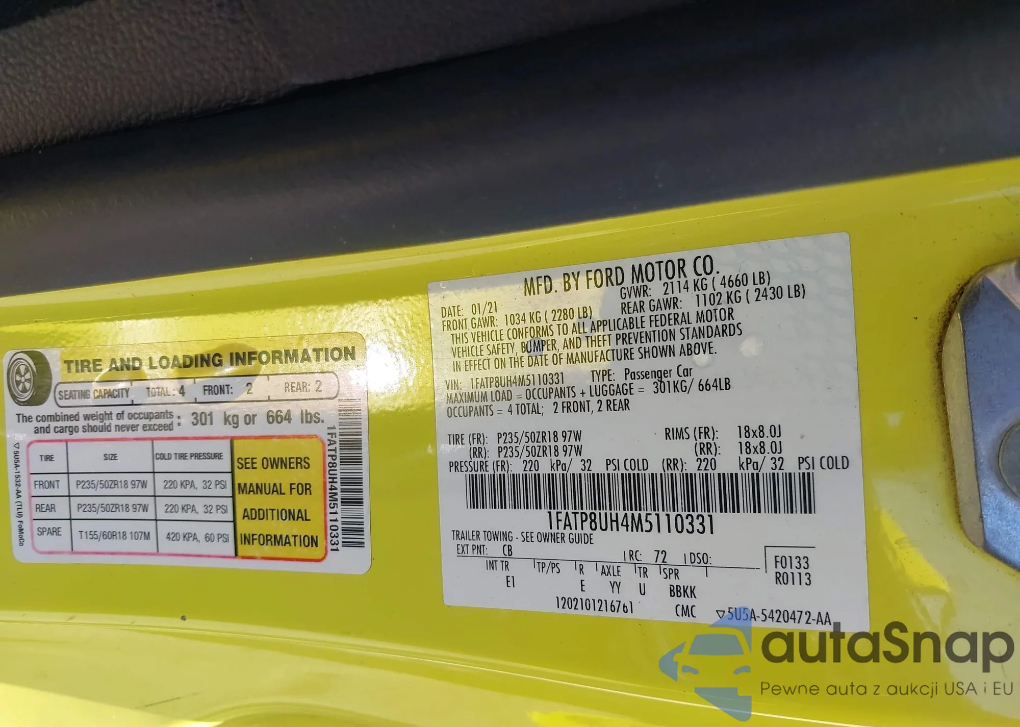 LOT: 42482803 VIN: 1FATP8UH4M5110331