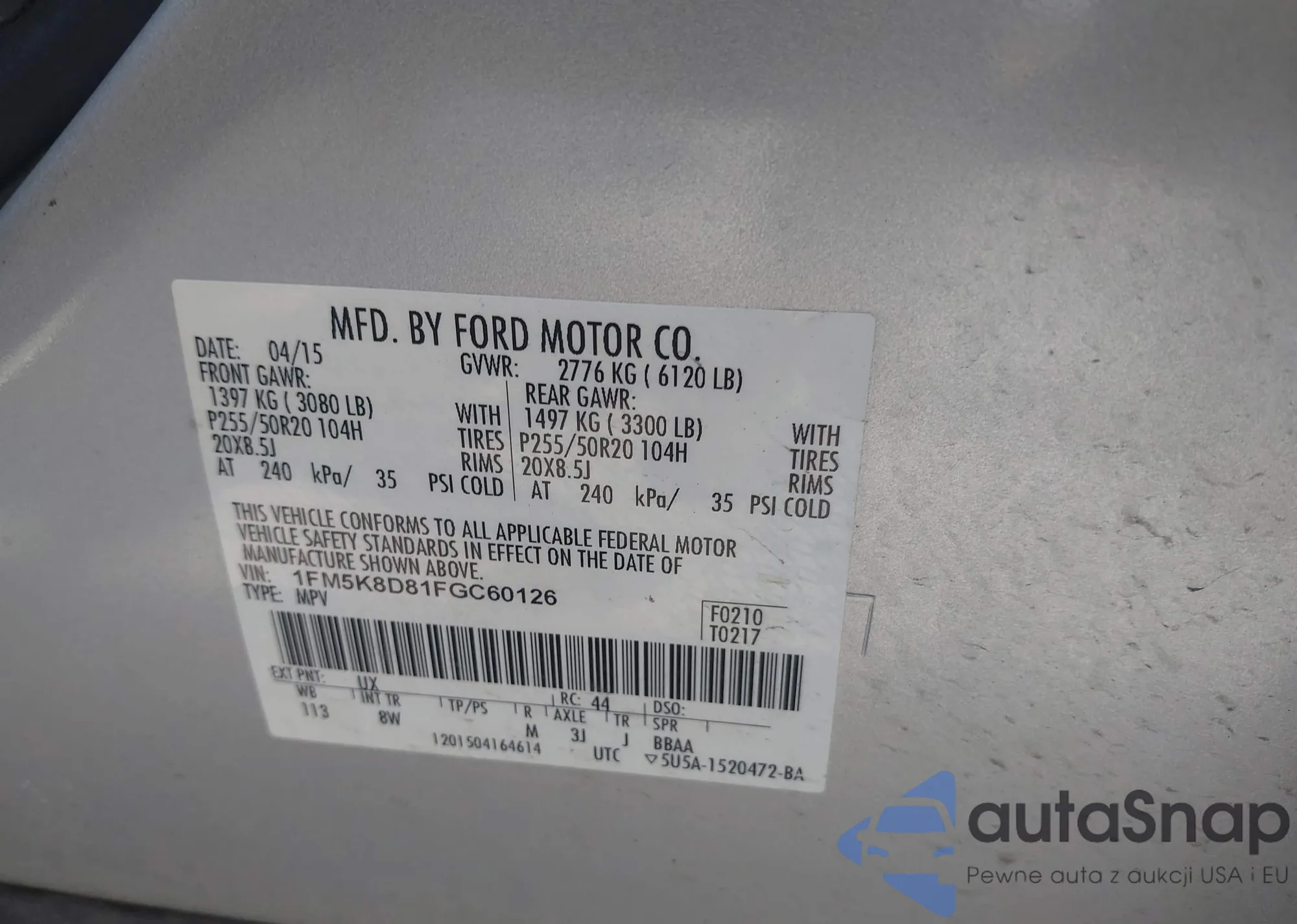 LOT: 42489368 VIN: 1FM5K8D81FGC60126
