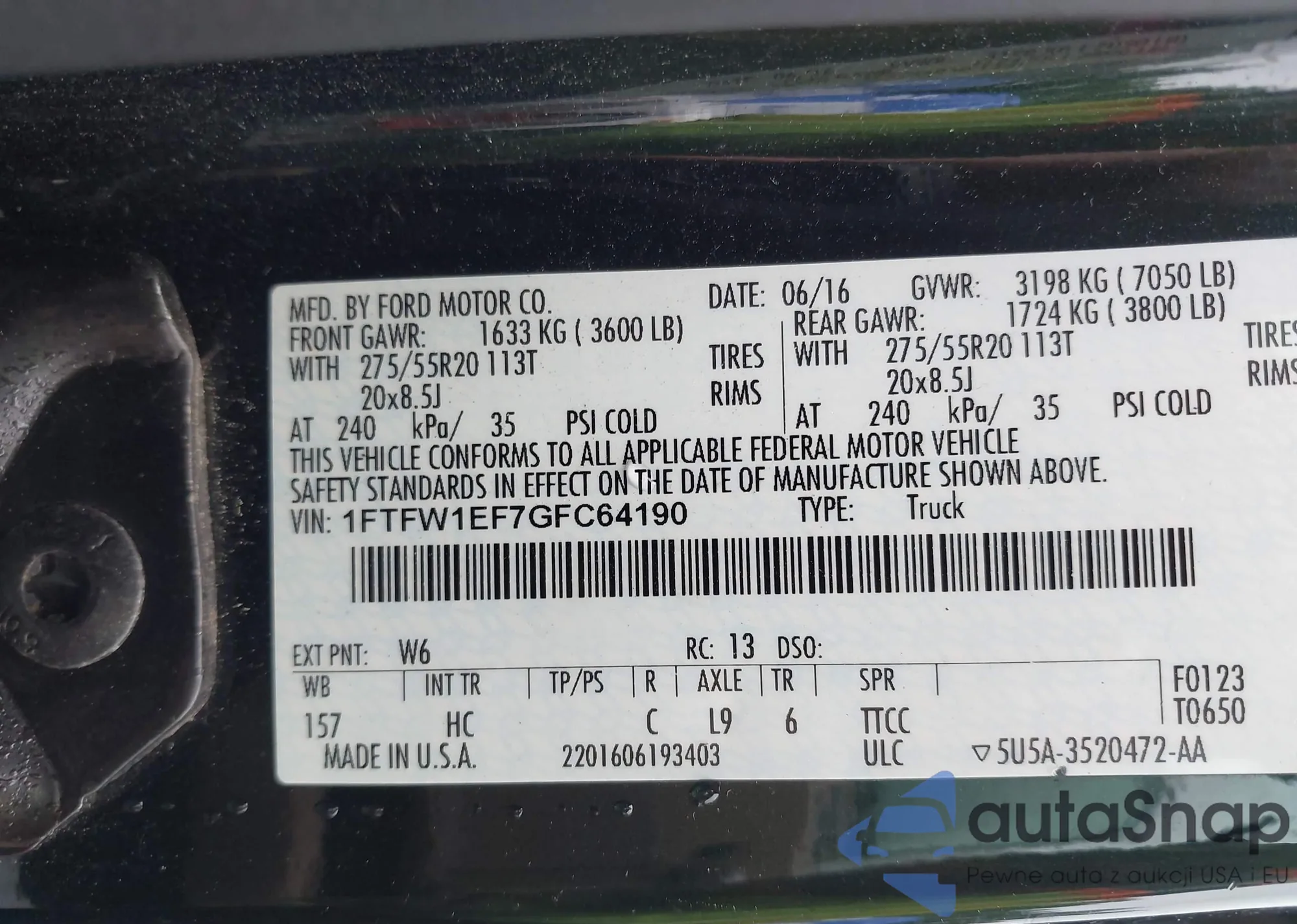 LOT: 42513635 VIN: 1FTFW1EF7GFC64190