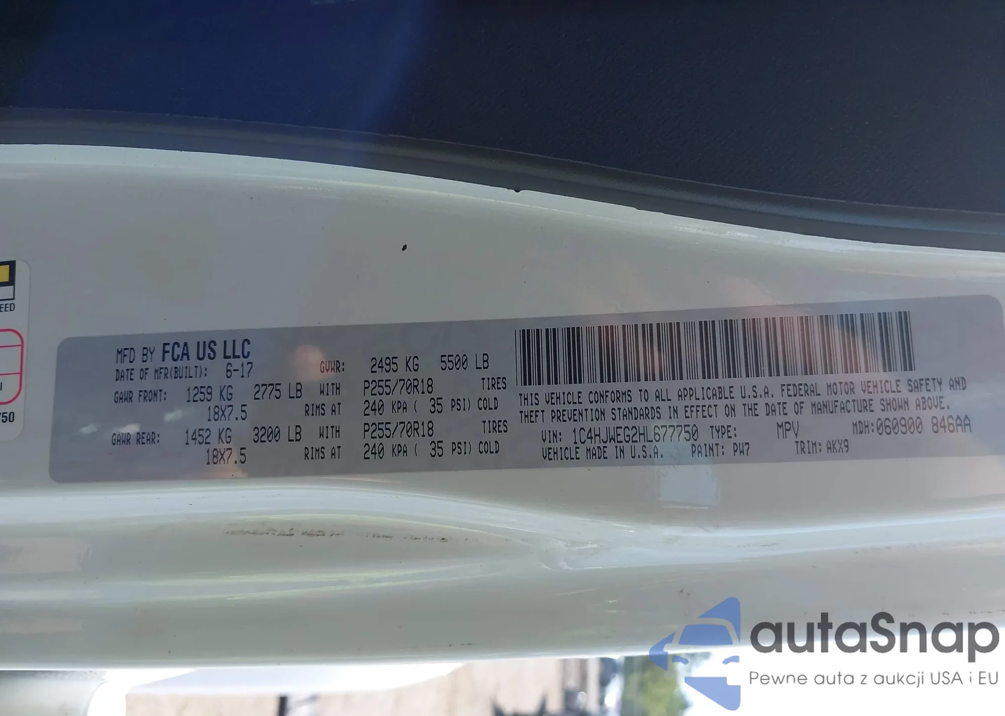 • VIN 1C4HJWEG2HL677750