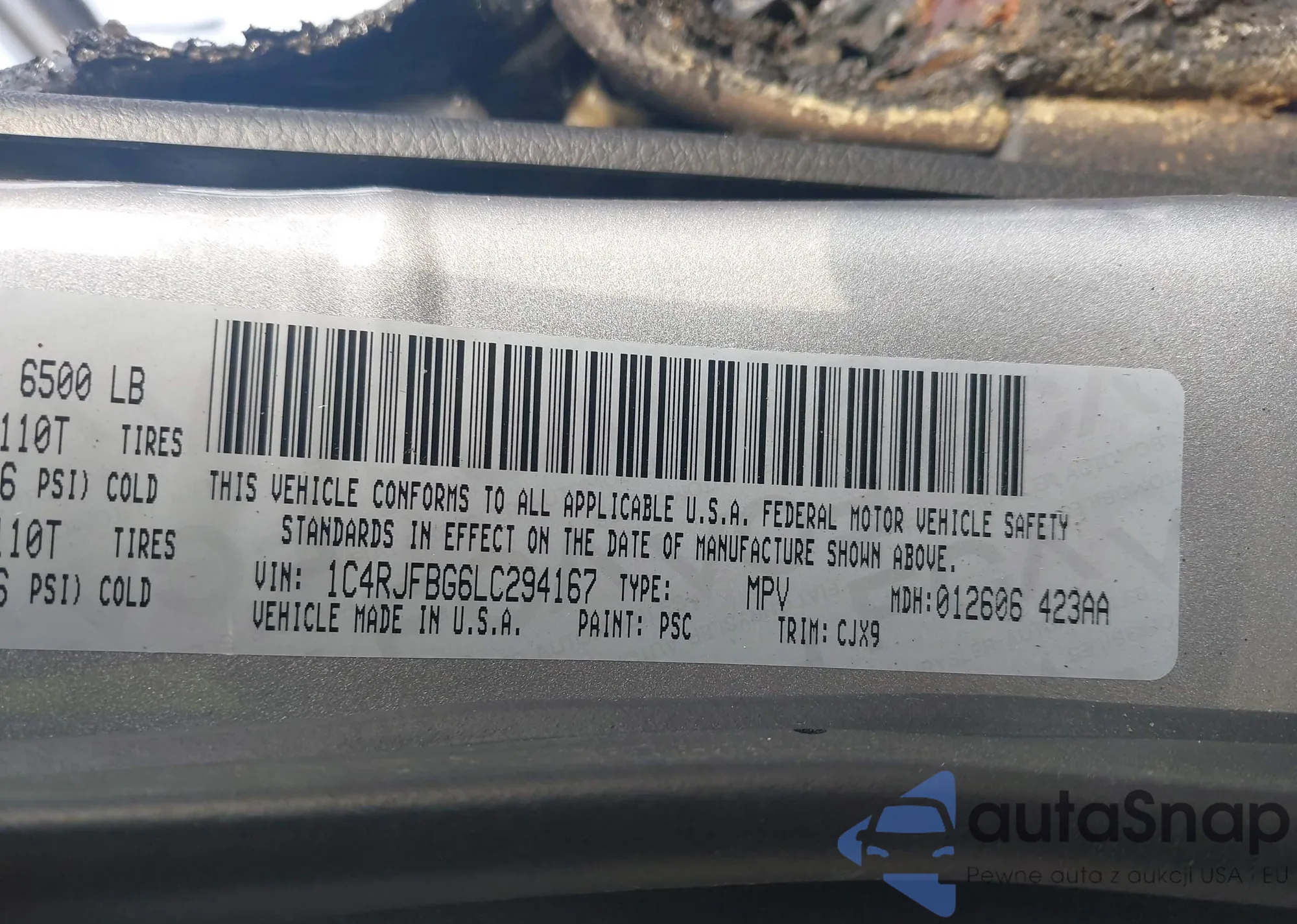 • VIN 1C4RJFBG6LC294167