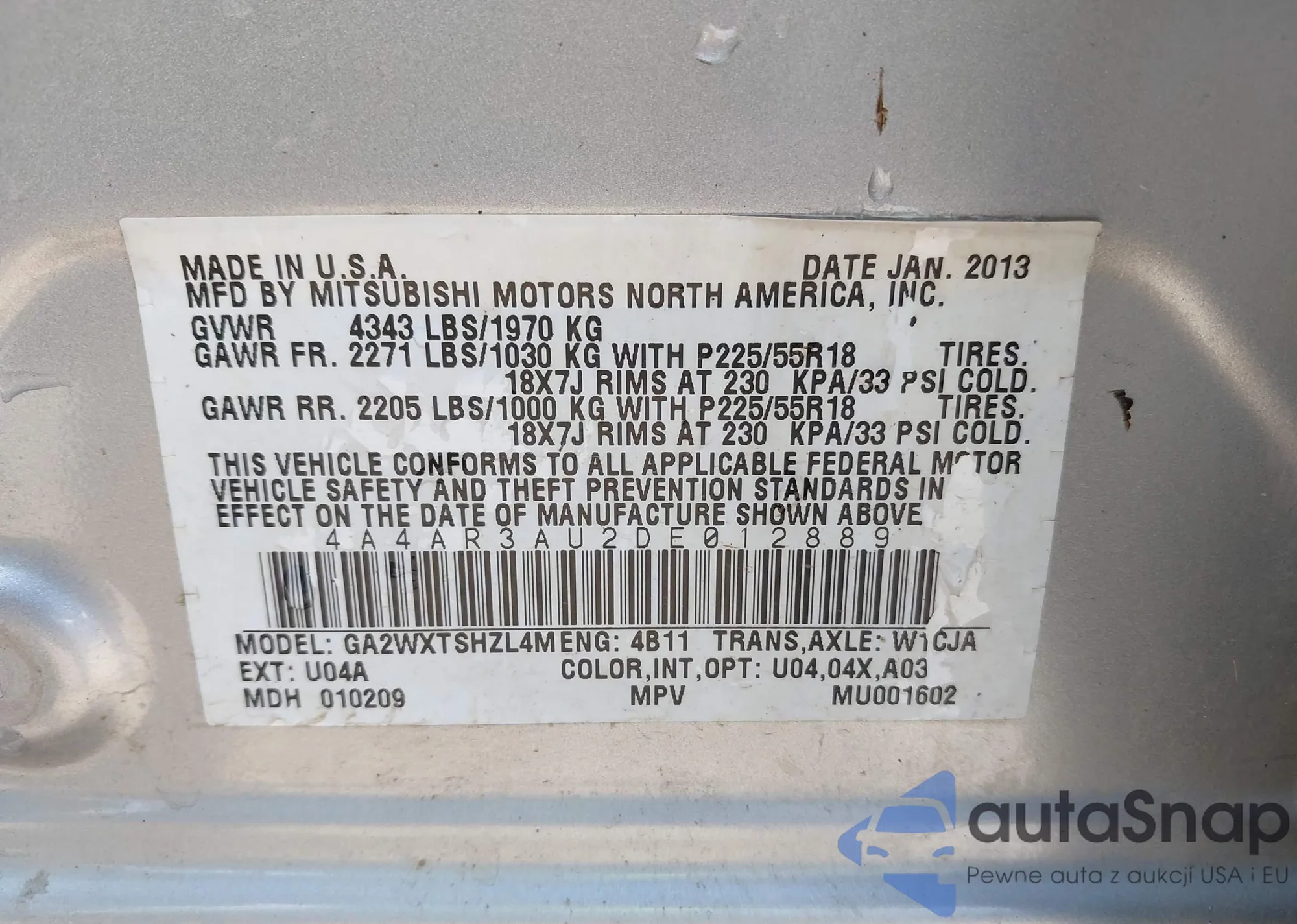 LOT: 42553736 VIN: 1FMCU0GX9DUA45601