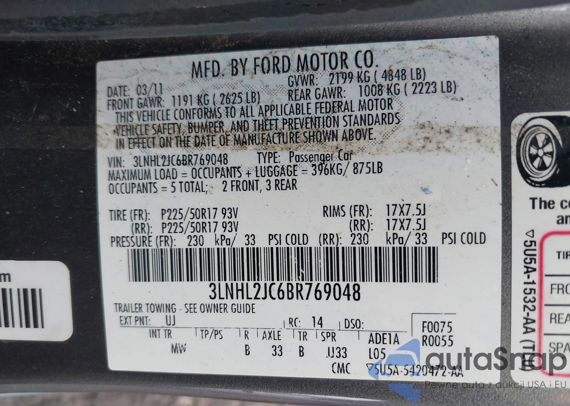 • VIN 3LNHL2JC6BR769048