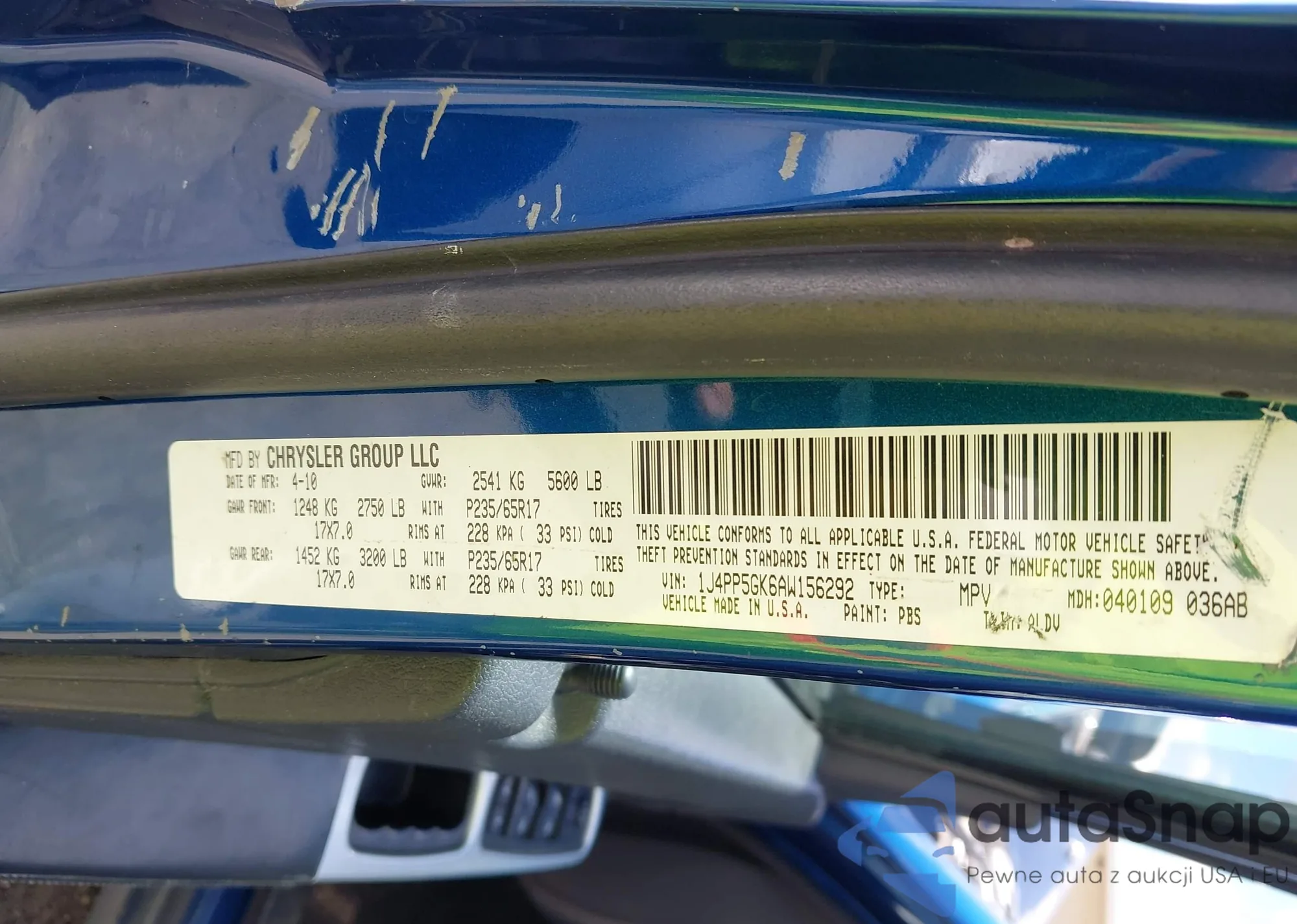 LOT: 42736368 VIN: 1J4PP5GK6AW156292