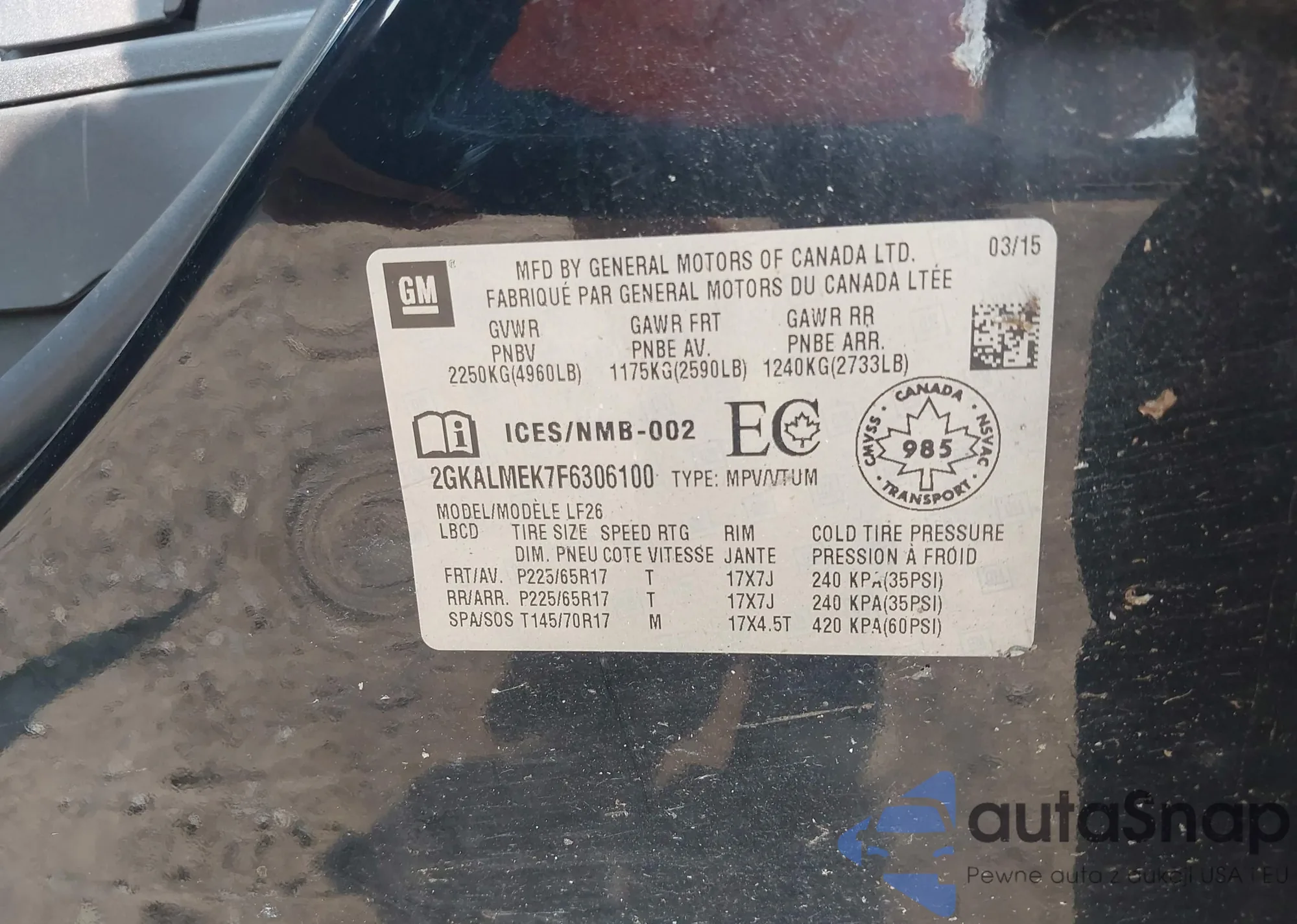 • VIN KL8CD6S99FC747208