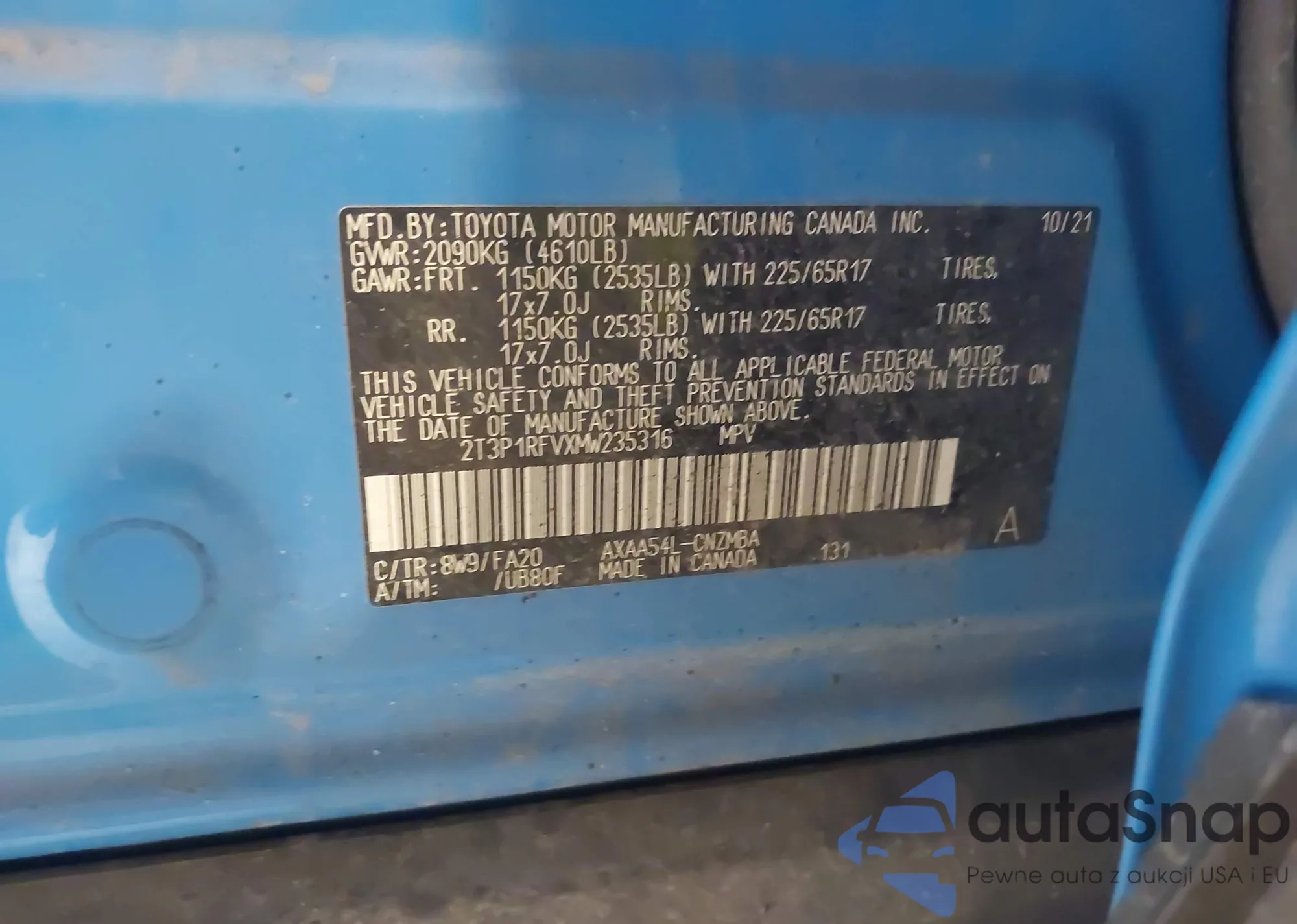• VIN 2T3P1RFVXMW235316