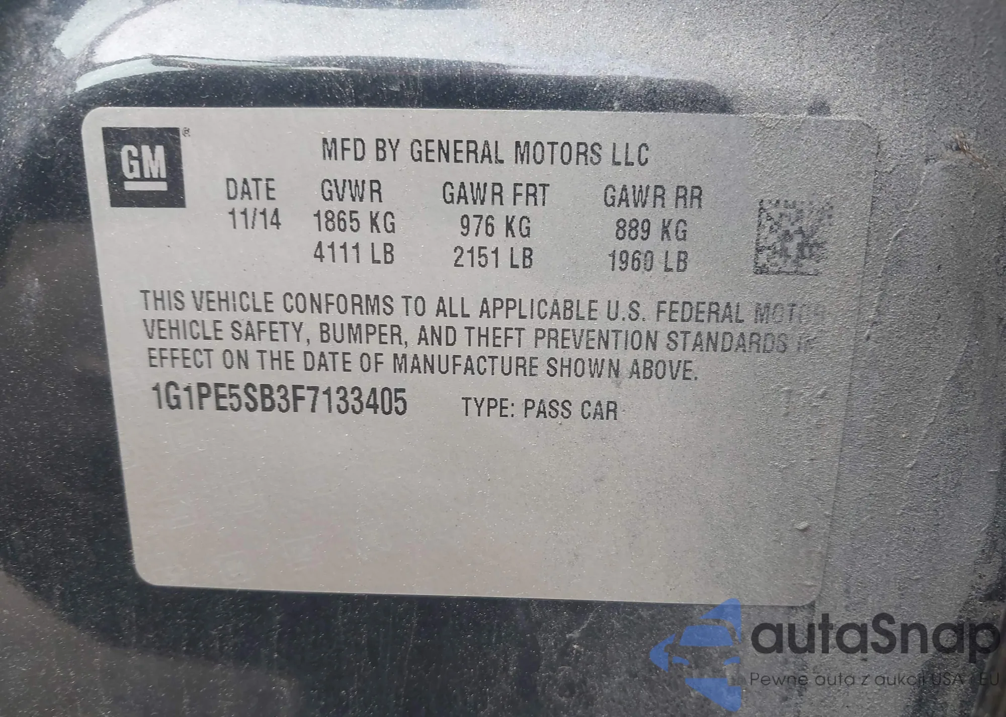 • VIN 1G1PE5SB3F7133405