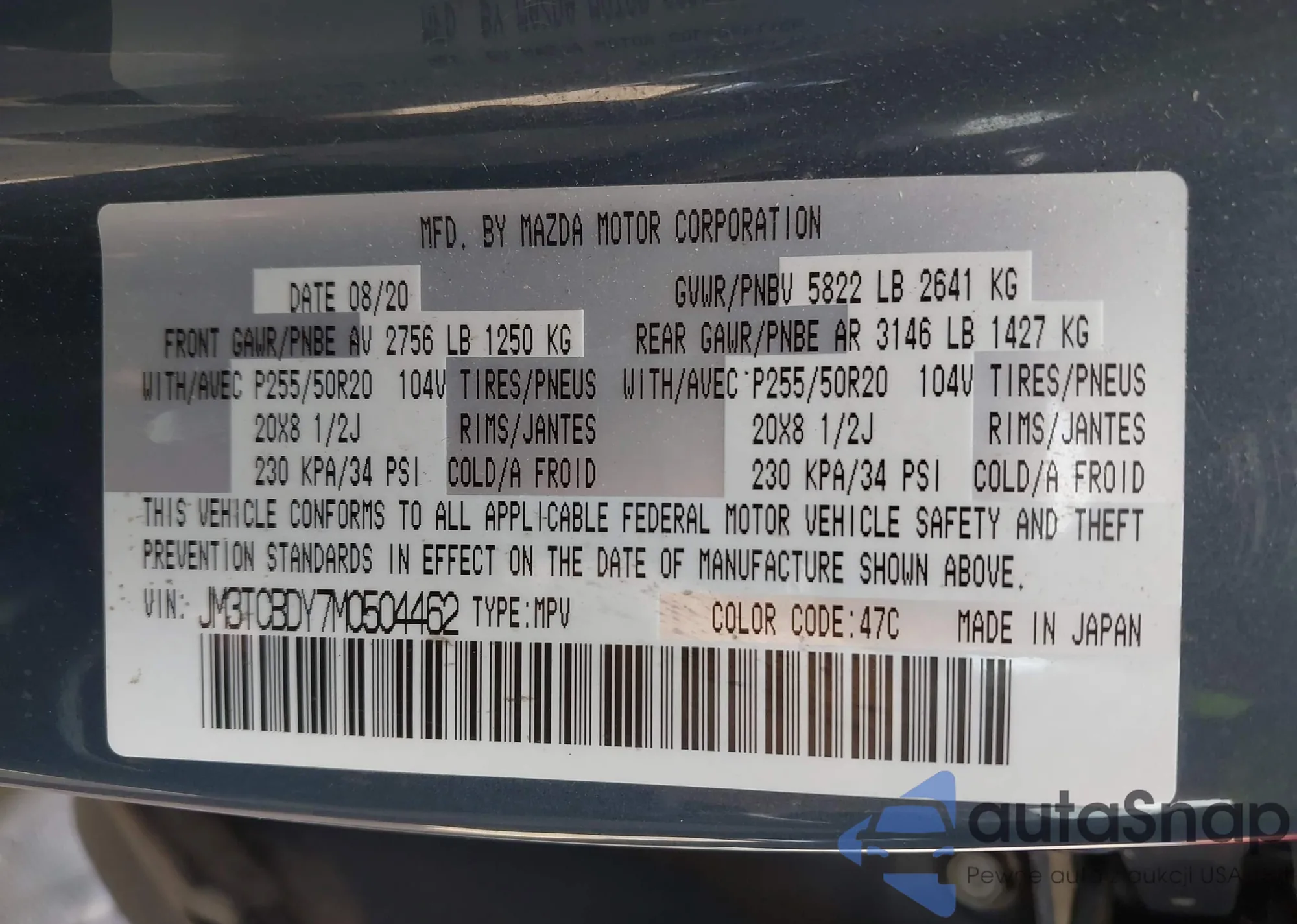 • VIN JM3TCBDY7M0504462