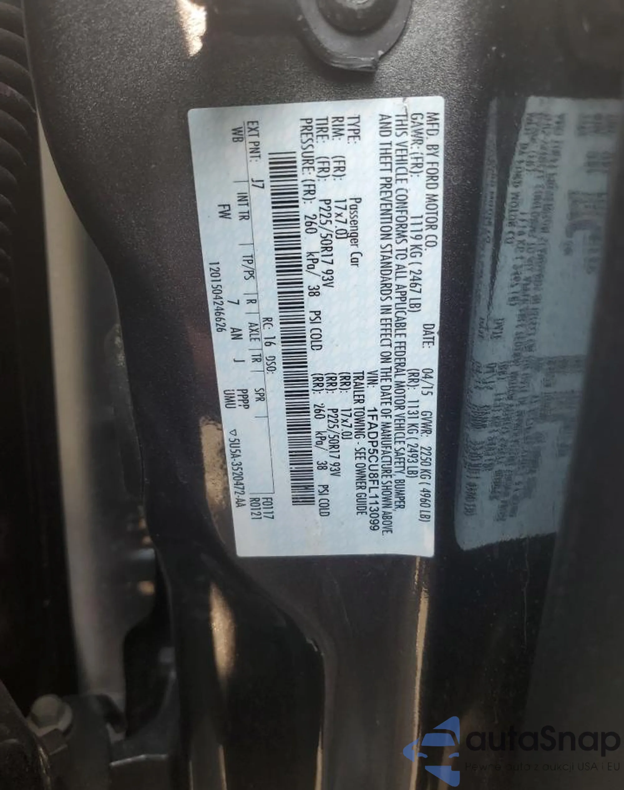 • VIN 1FADP5CU8FL113099