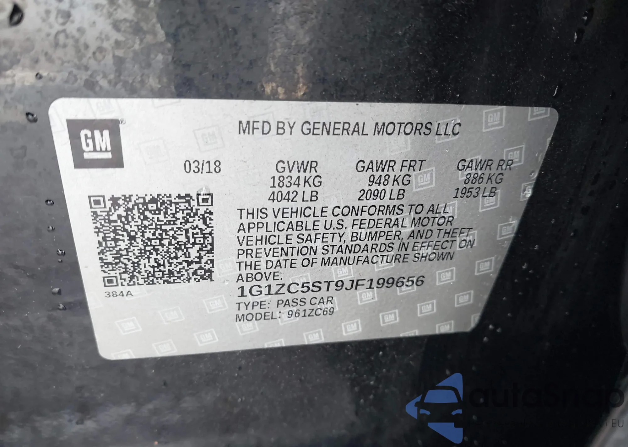 • VIN 1G1ZC5ST9JF199656