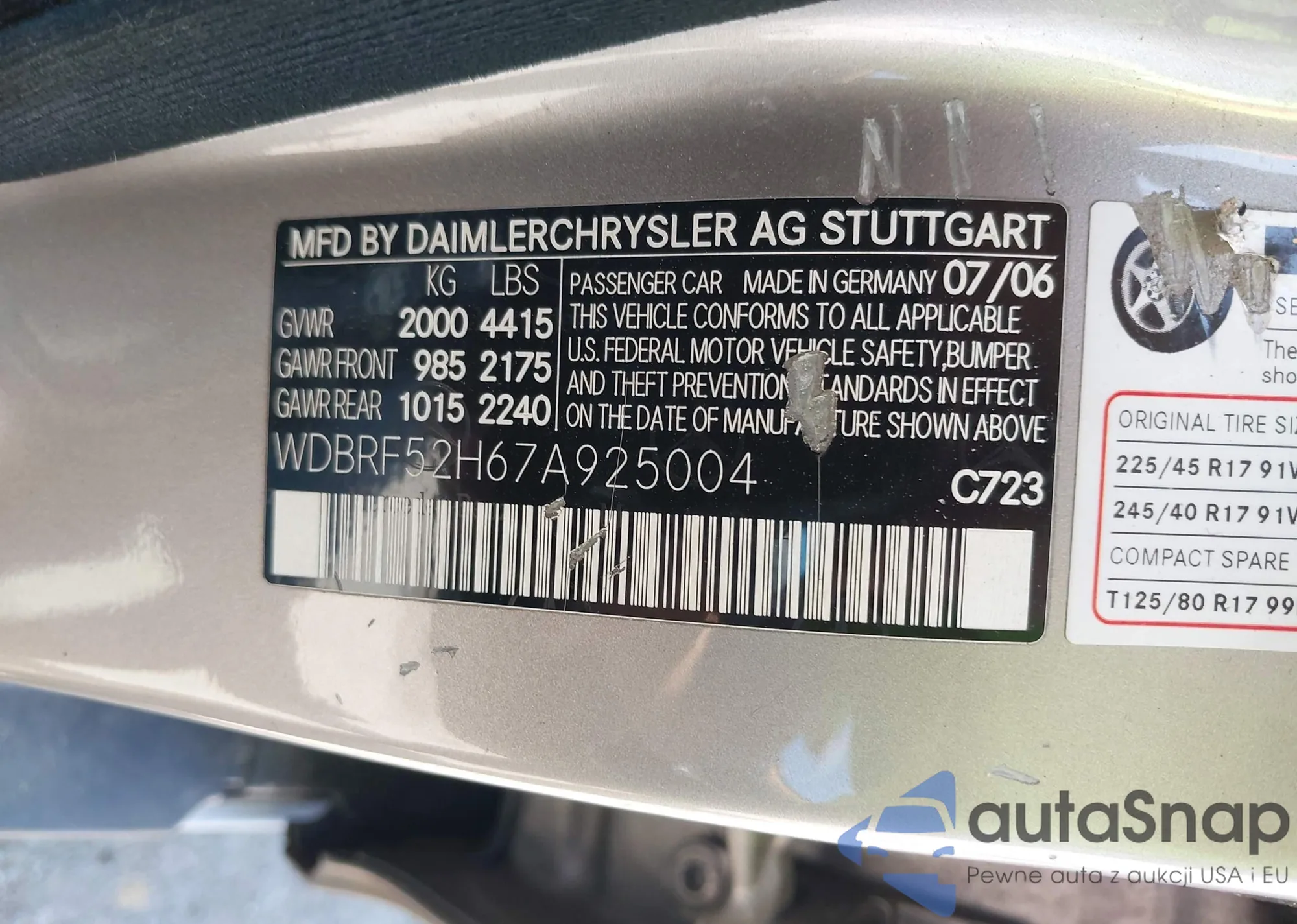 • VIN WDBRF52H67A925004