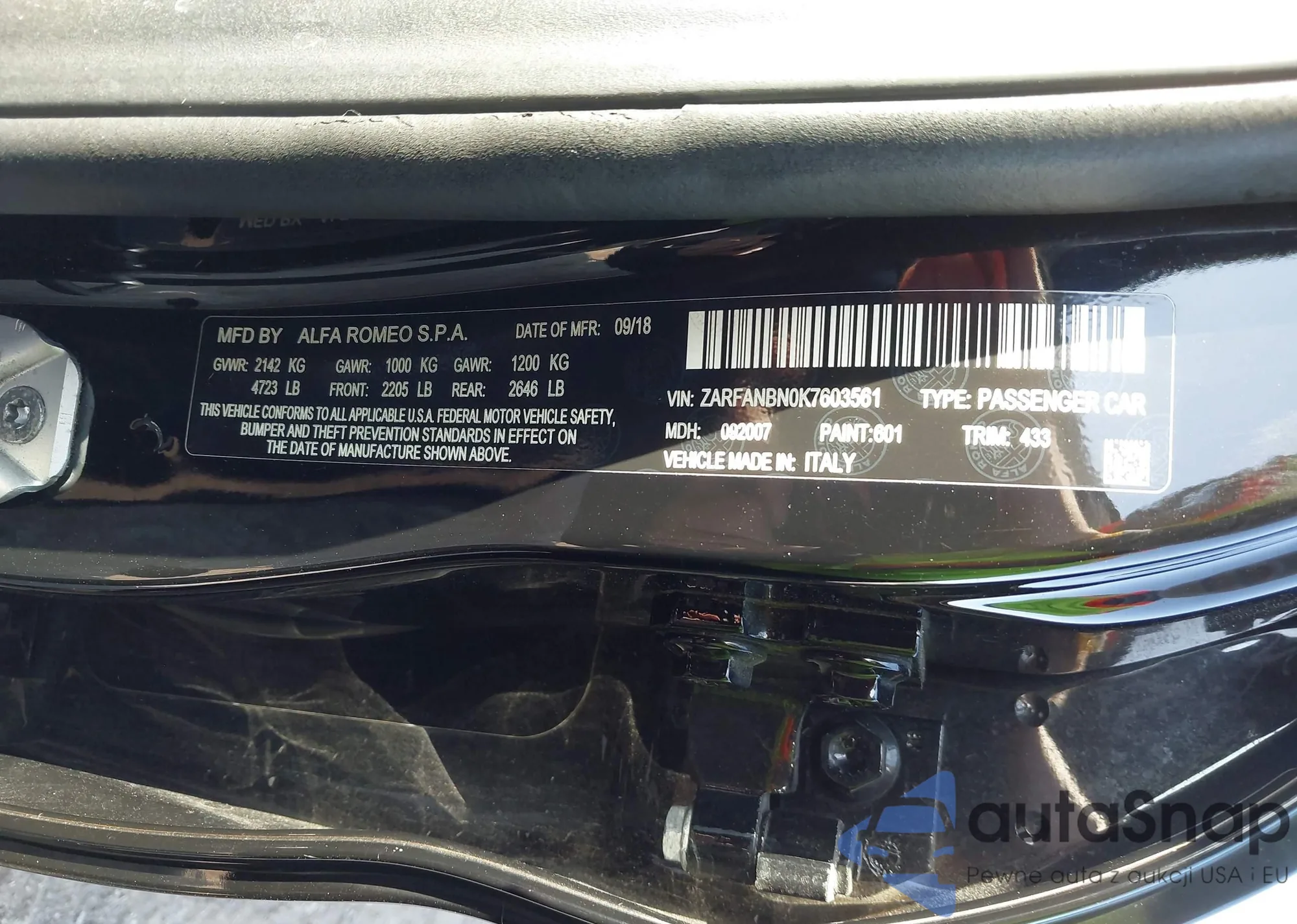• VIN ZARFANBN0K7603561