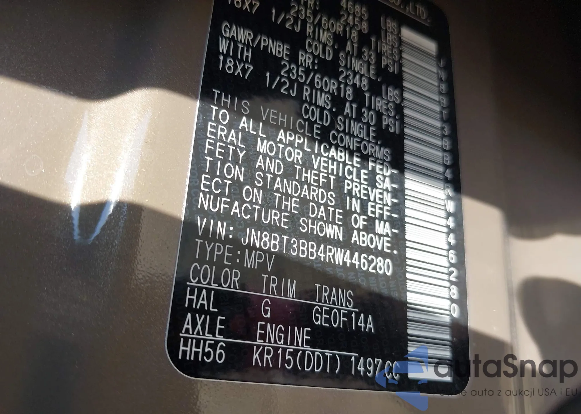 • VIN JN8BT3BB4RW446280