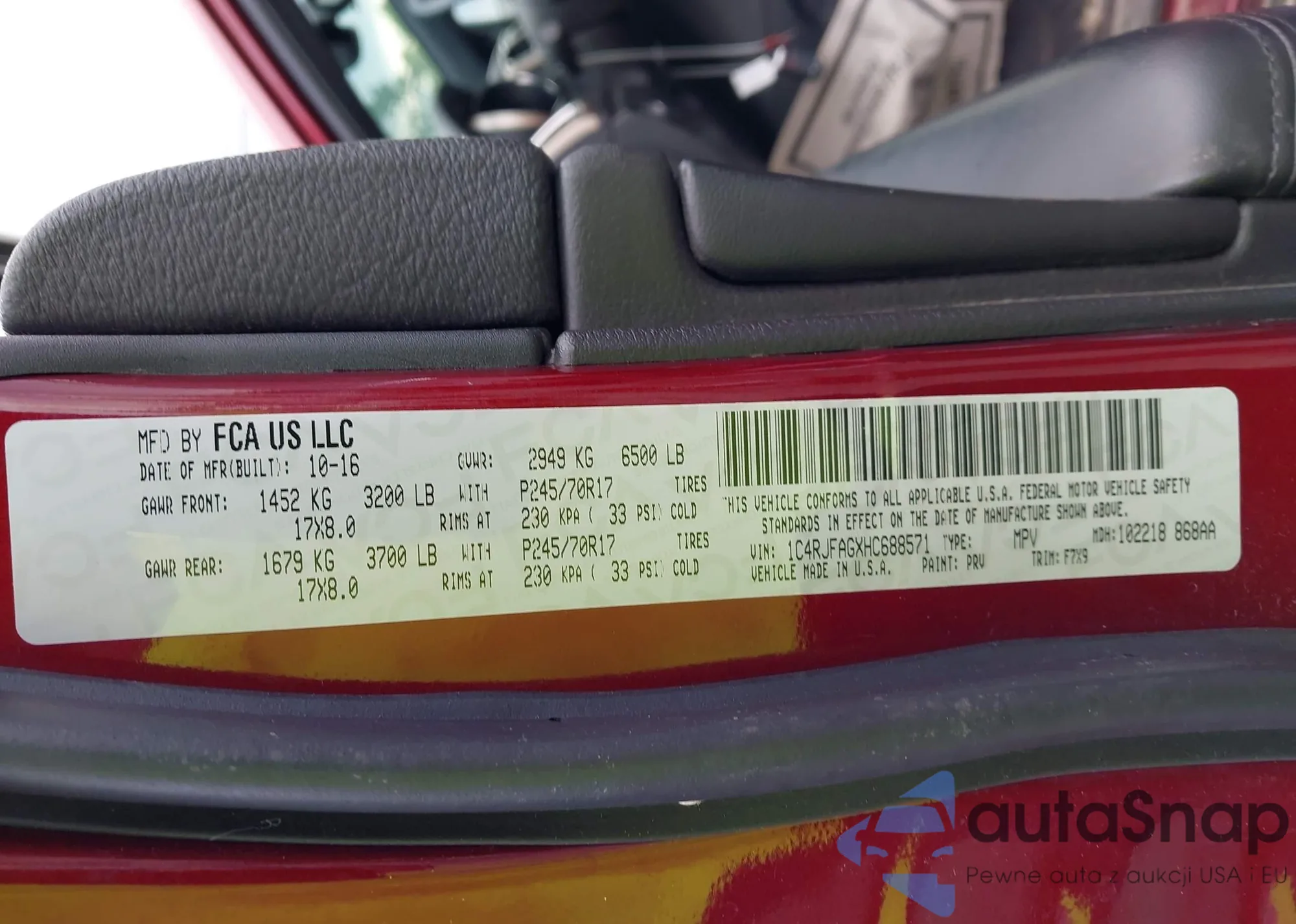 • VIN 1C4RJFAGXHC688571