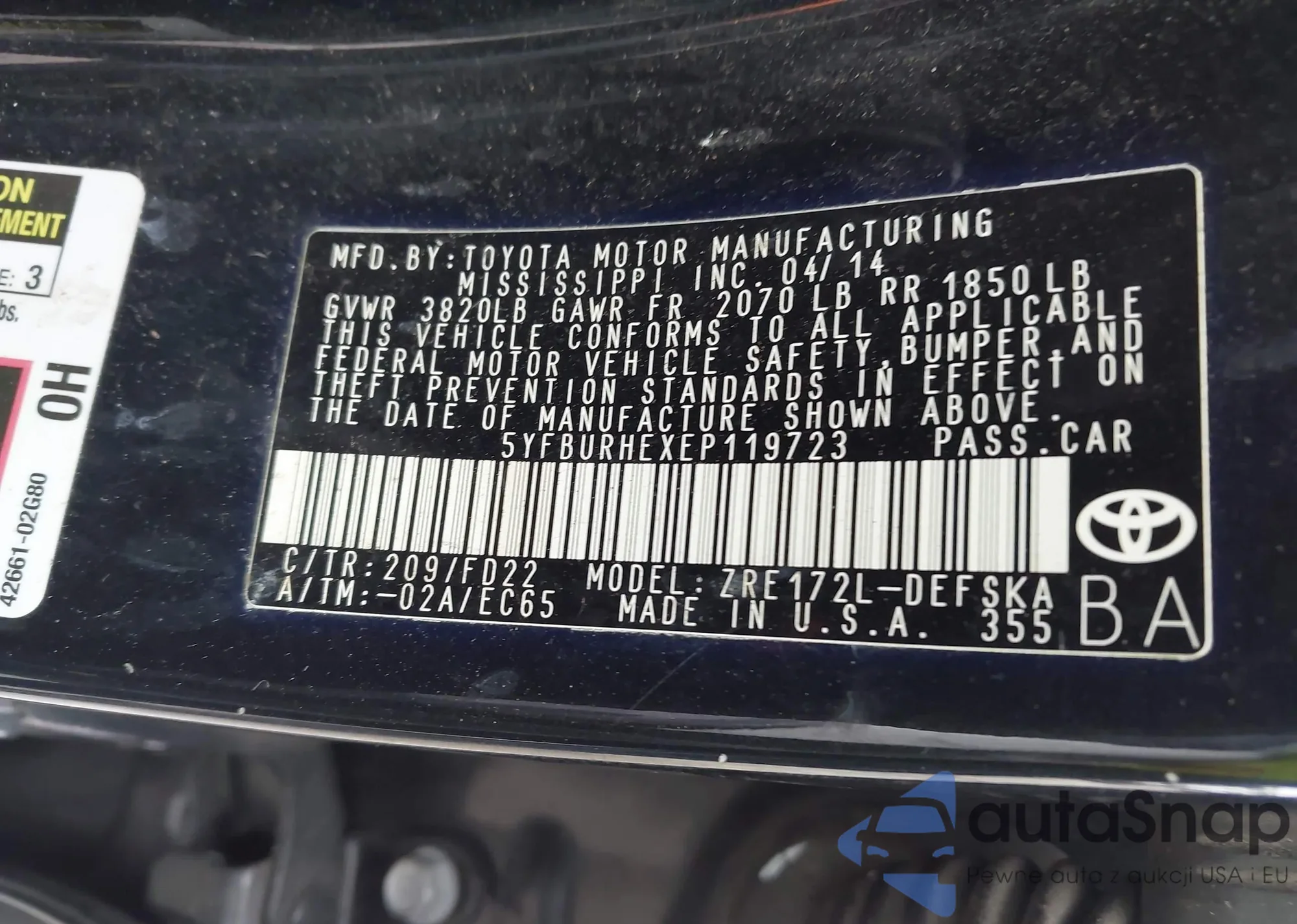 • VIN 5YFBURHEXEP119723