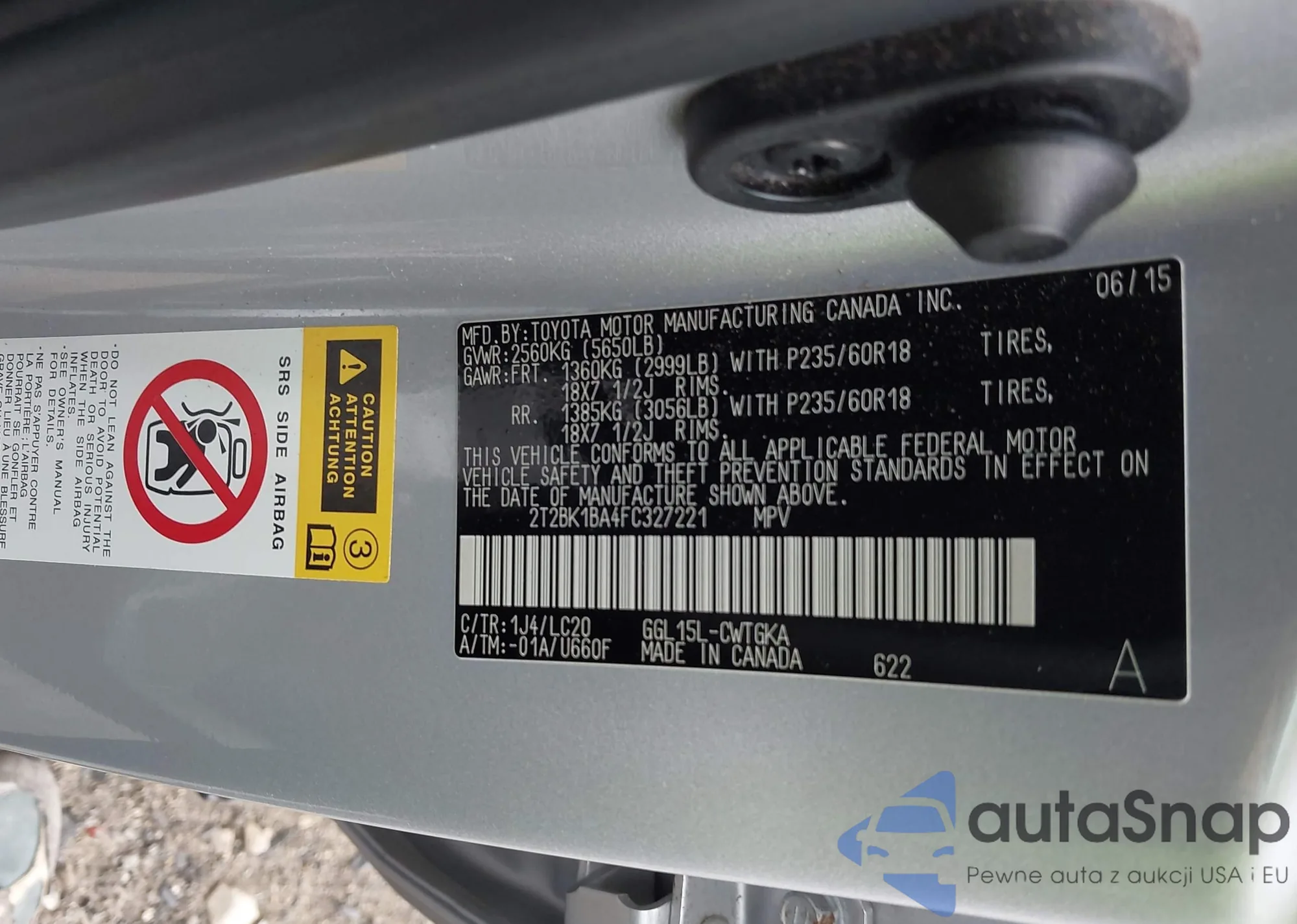 • VIN 2T2BK1BA4FC327221
