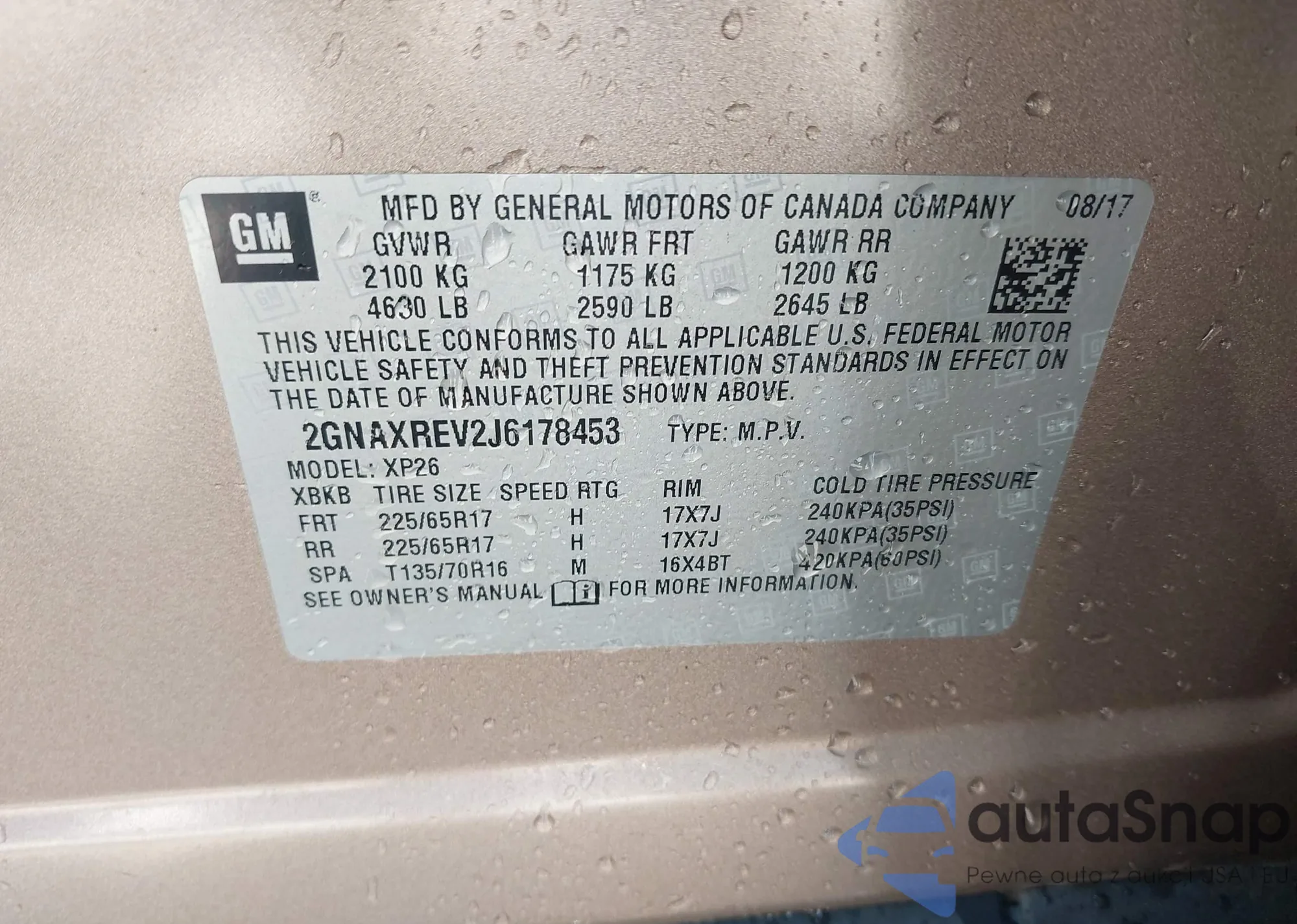 • VIN 2GNAXREV2J6178453