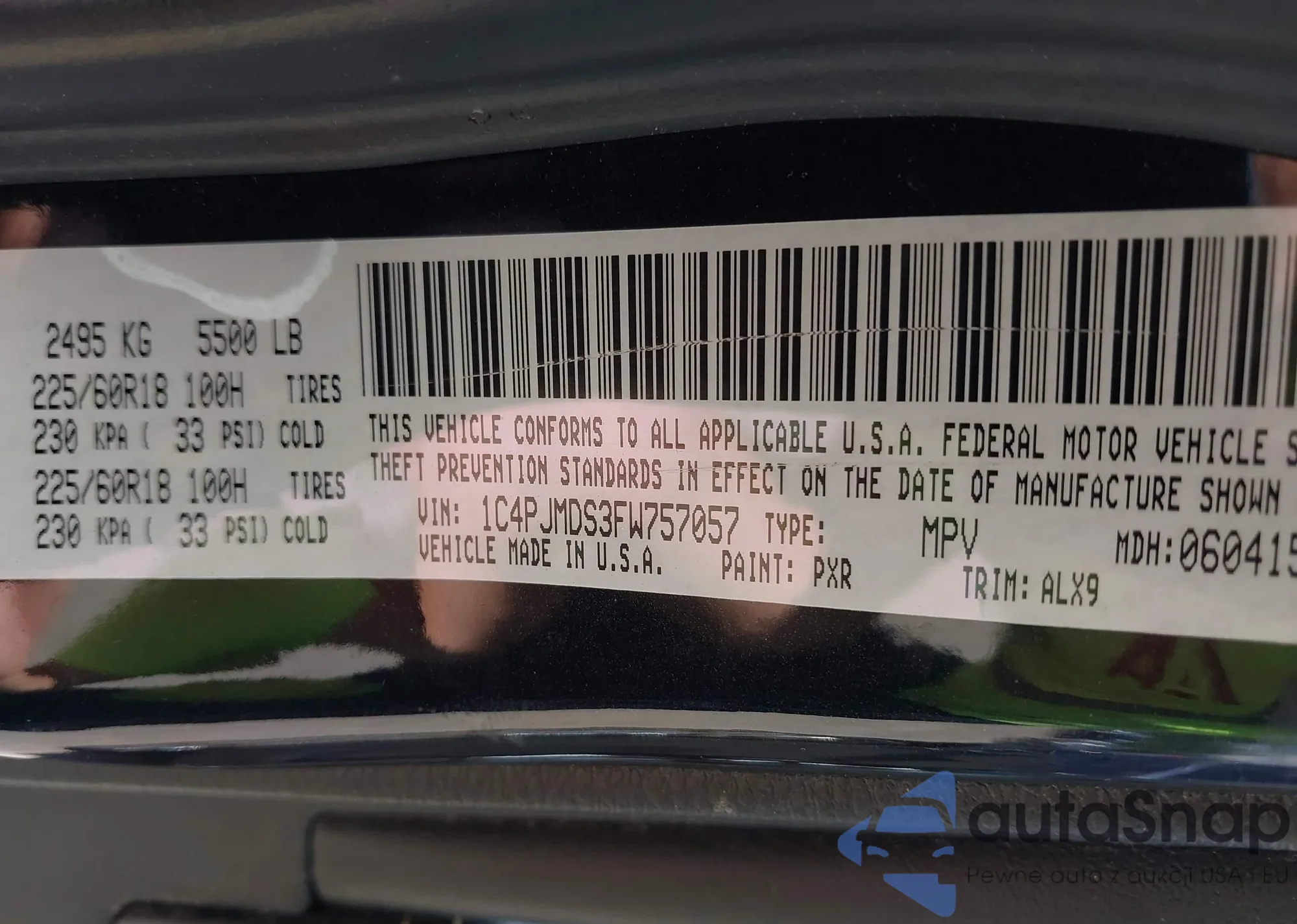 LOT: 42726418 VIN: 1C4PJMDS3FW757057