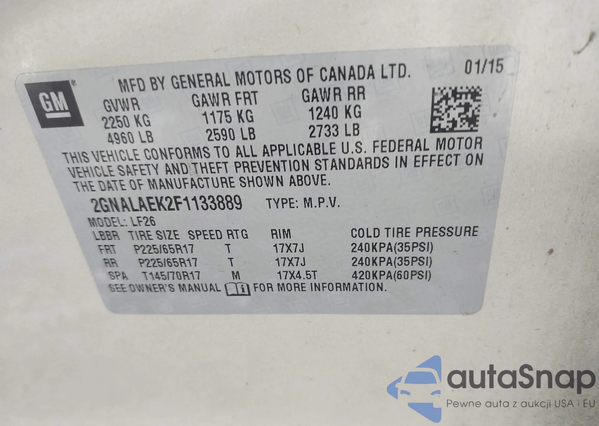 LOT: 42738993 VIN: 2GNALAEK2F1133889