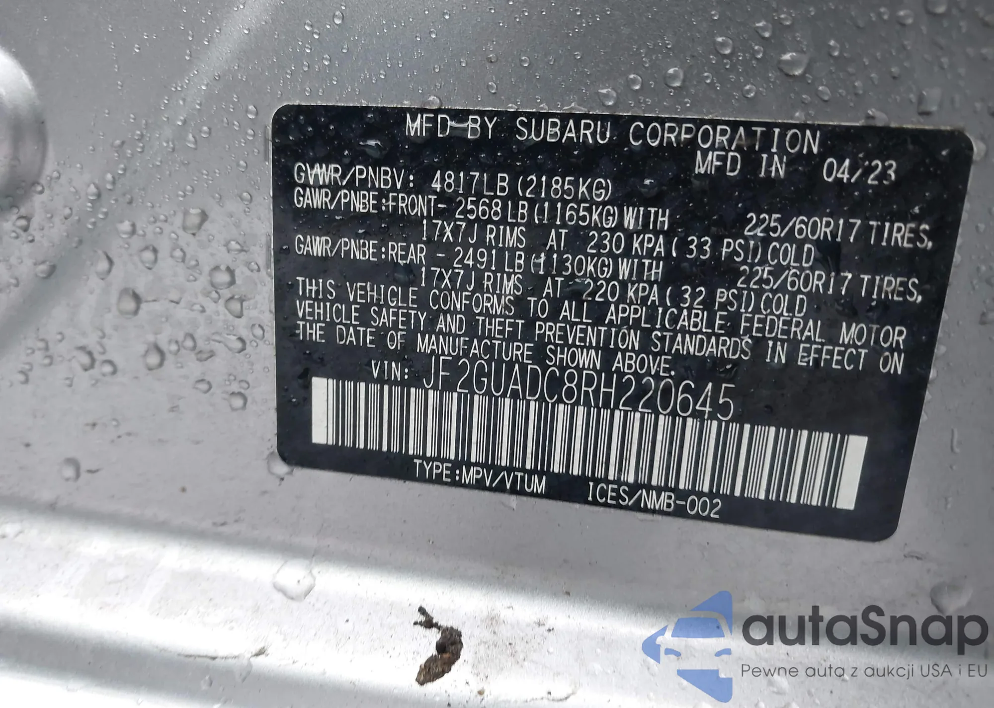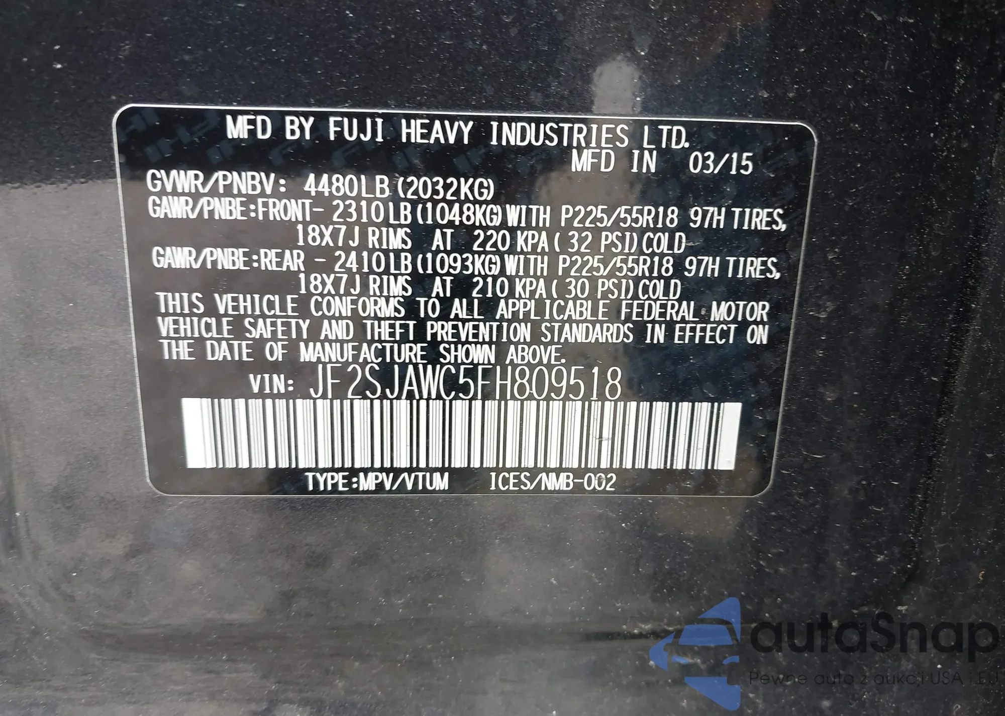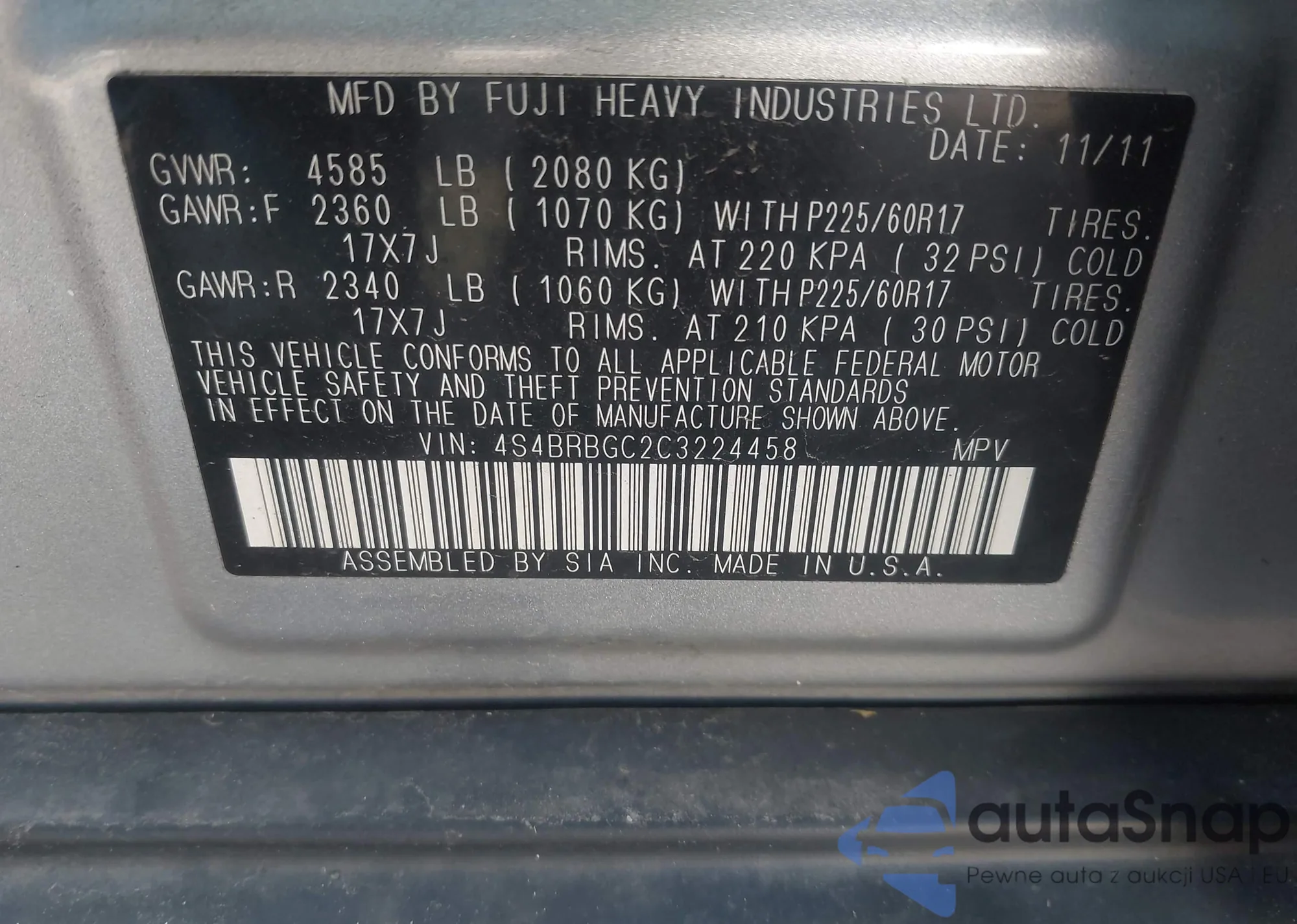 • VIN 4S4BRBGC2C3224458