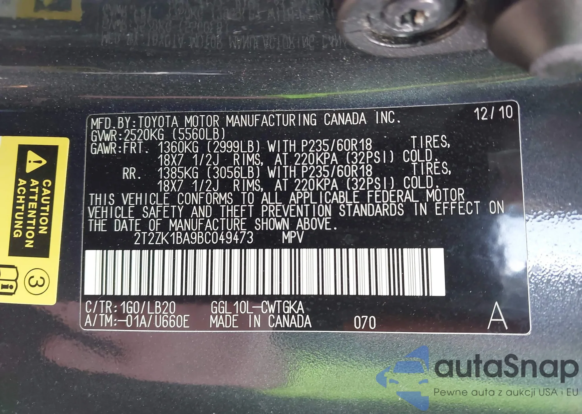 • VIN 2T2ZK1BA9BC049473