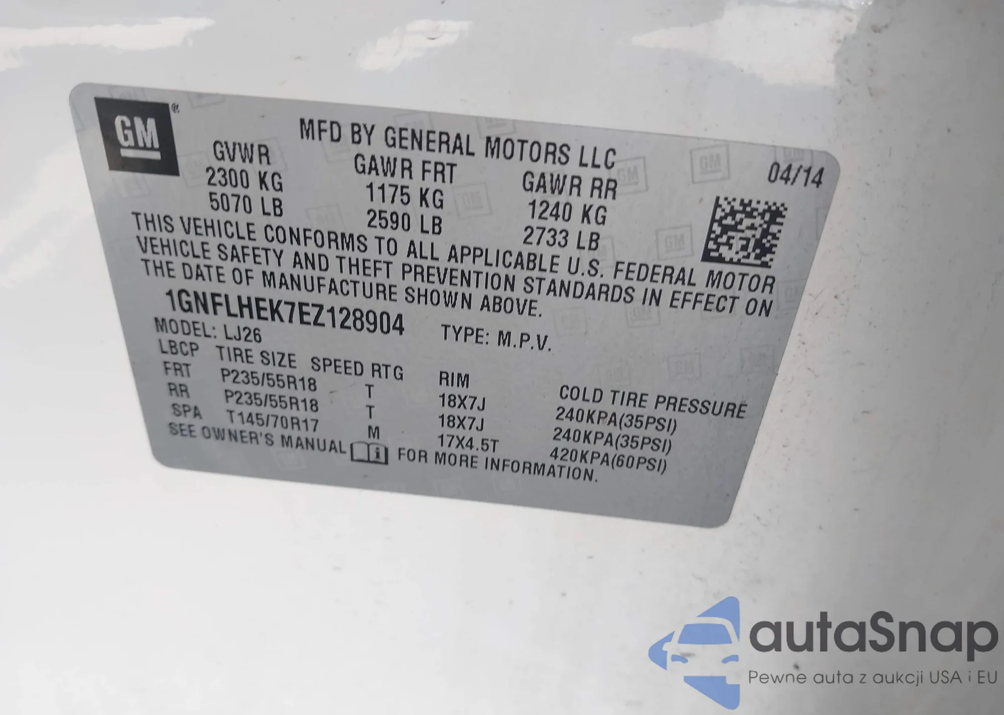 LOT: 42776575 VIN: 1GNFLHEK7EZ128904