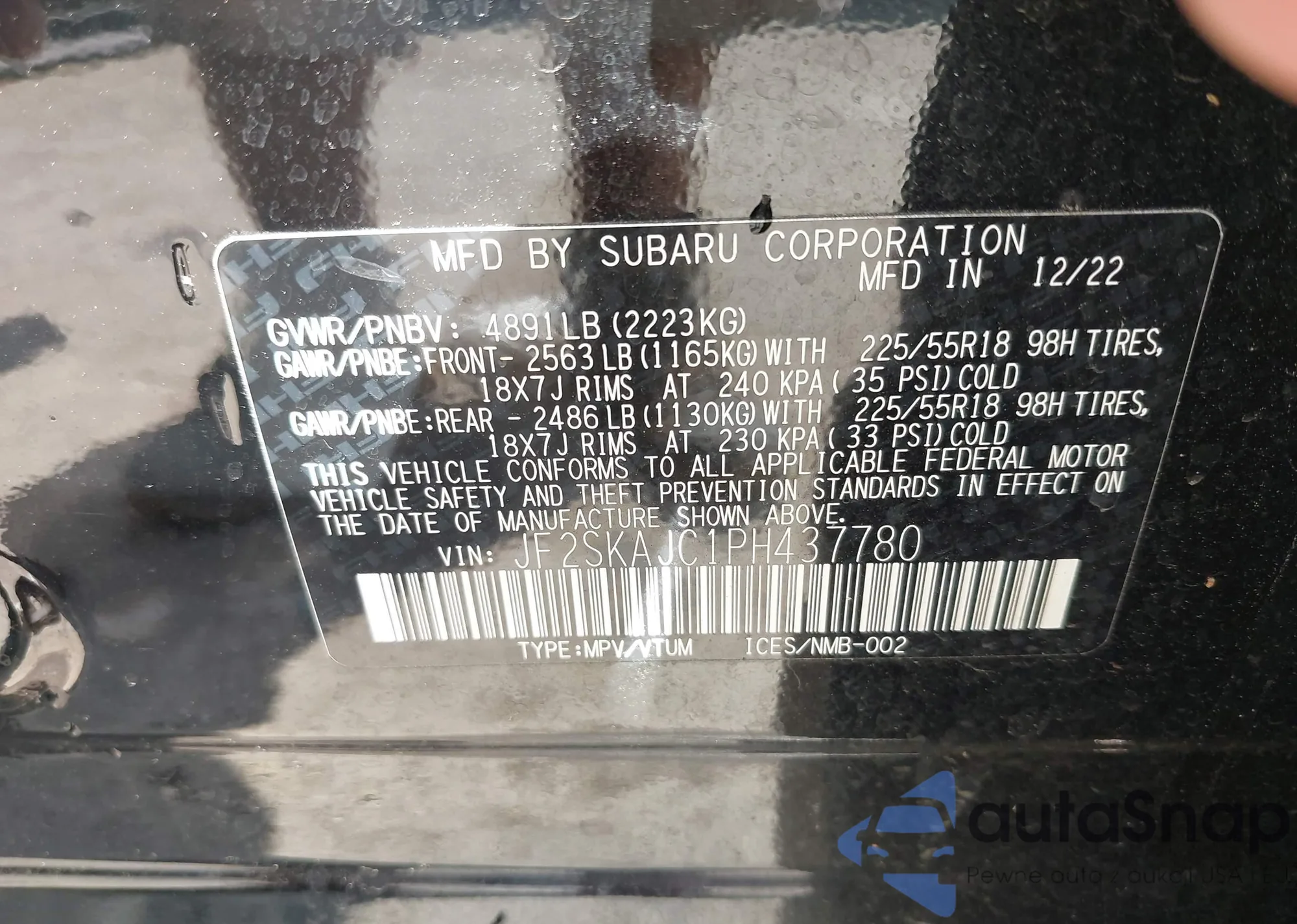 • VIN JF2SKAJC1PH437780