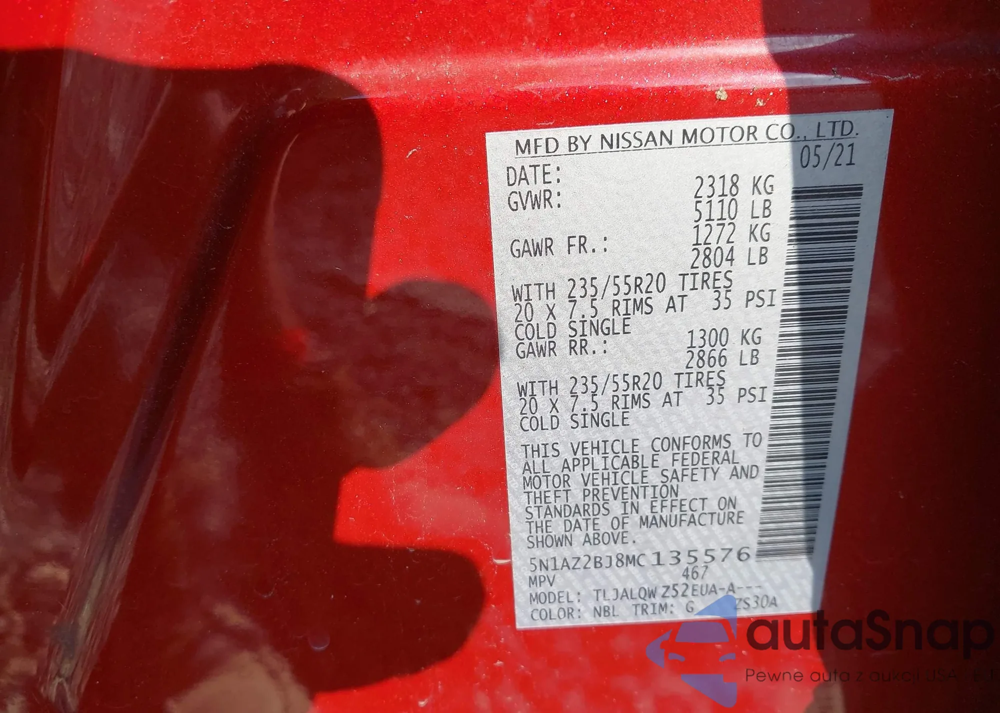 2021 Nissan Murano Sv Fwd from USA, damaged, VIN 5N1AZ2BJ8MC135576