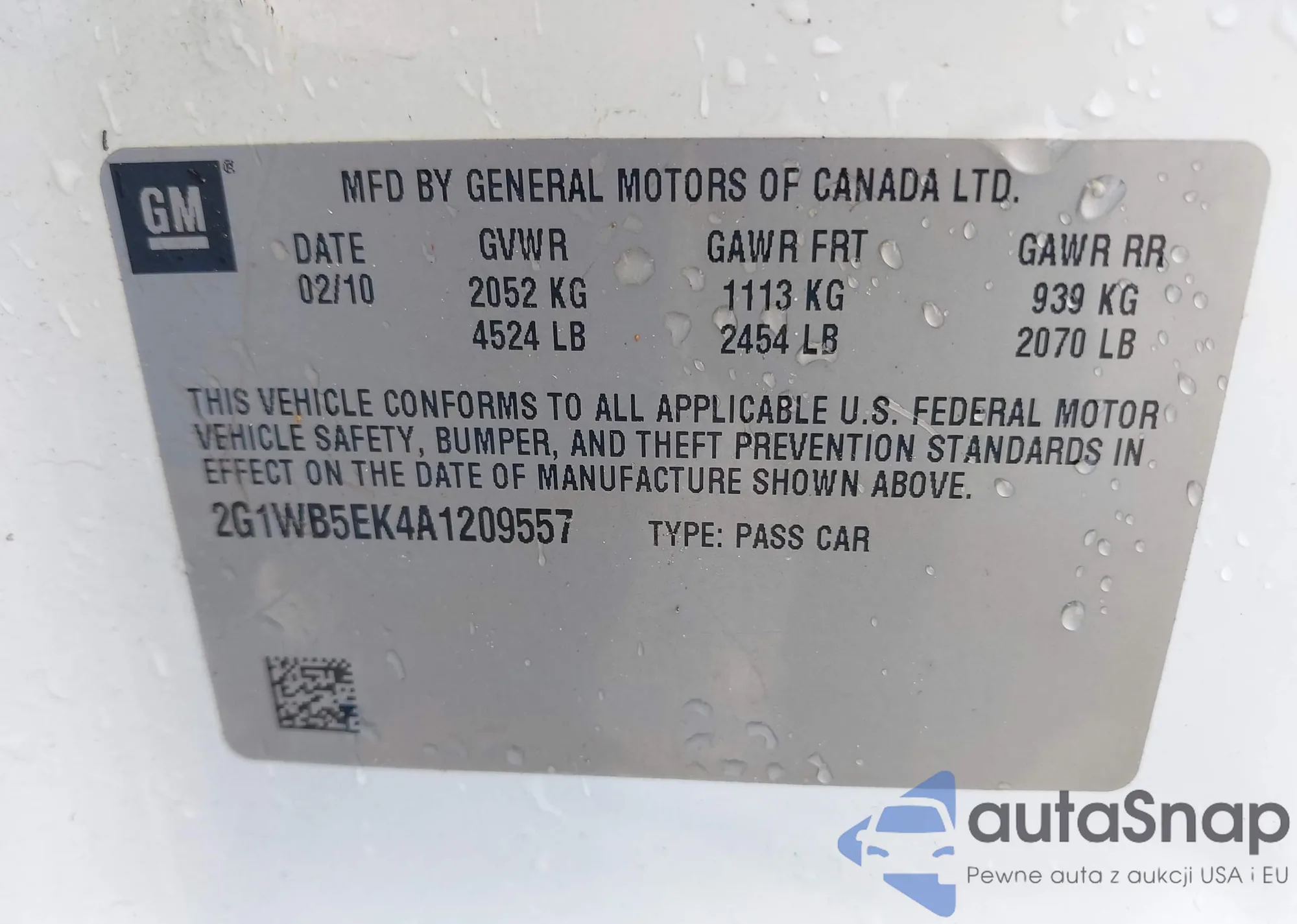 LOT: 42607986 VIN: 2G1WB5EK4A1209557