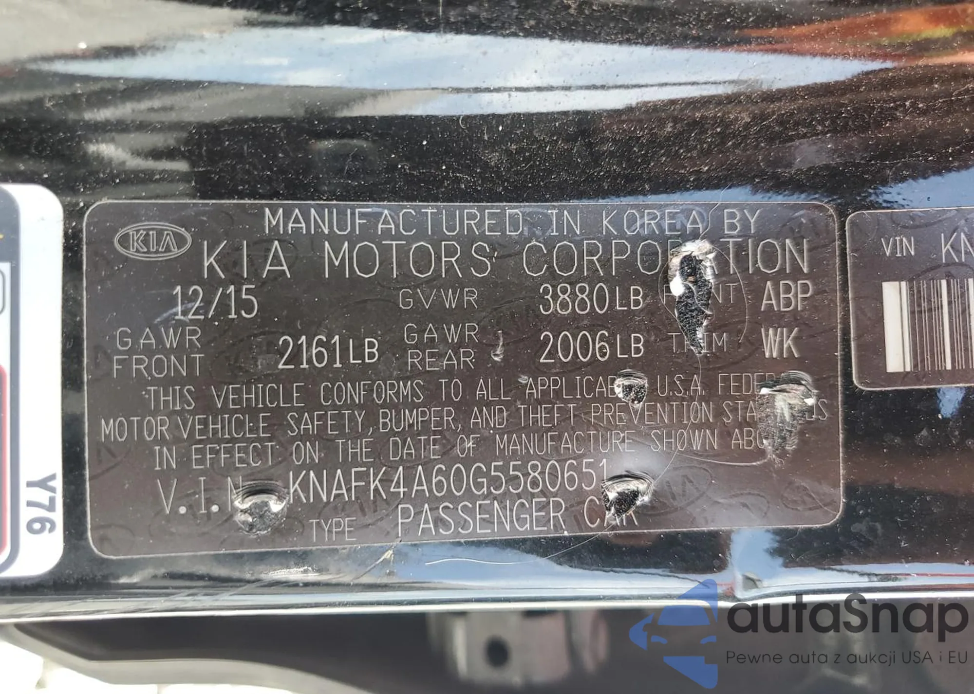 LOT: 61007185 VIN: KNAFK4A60G5580651