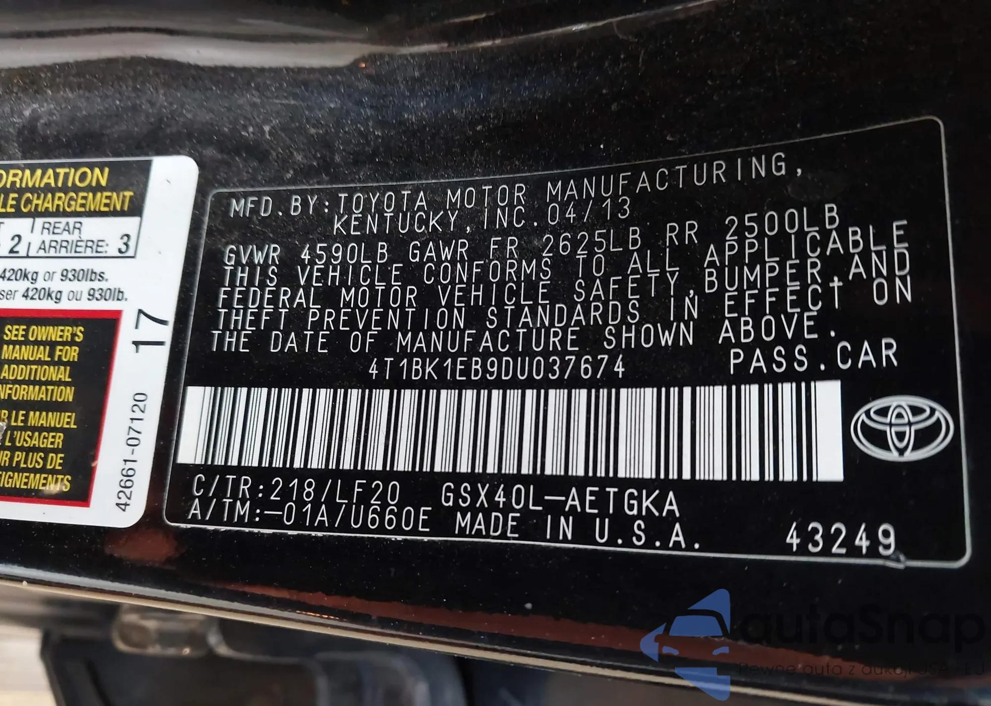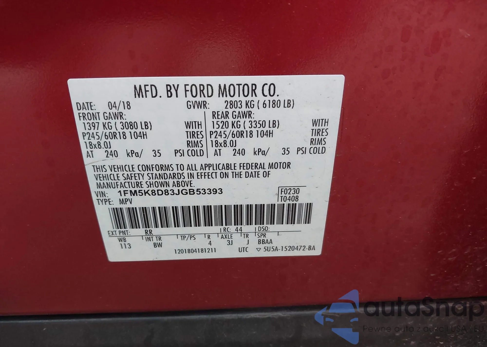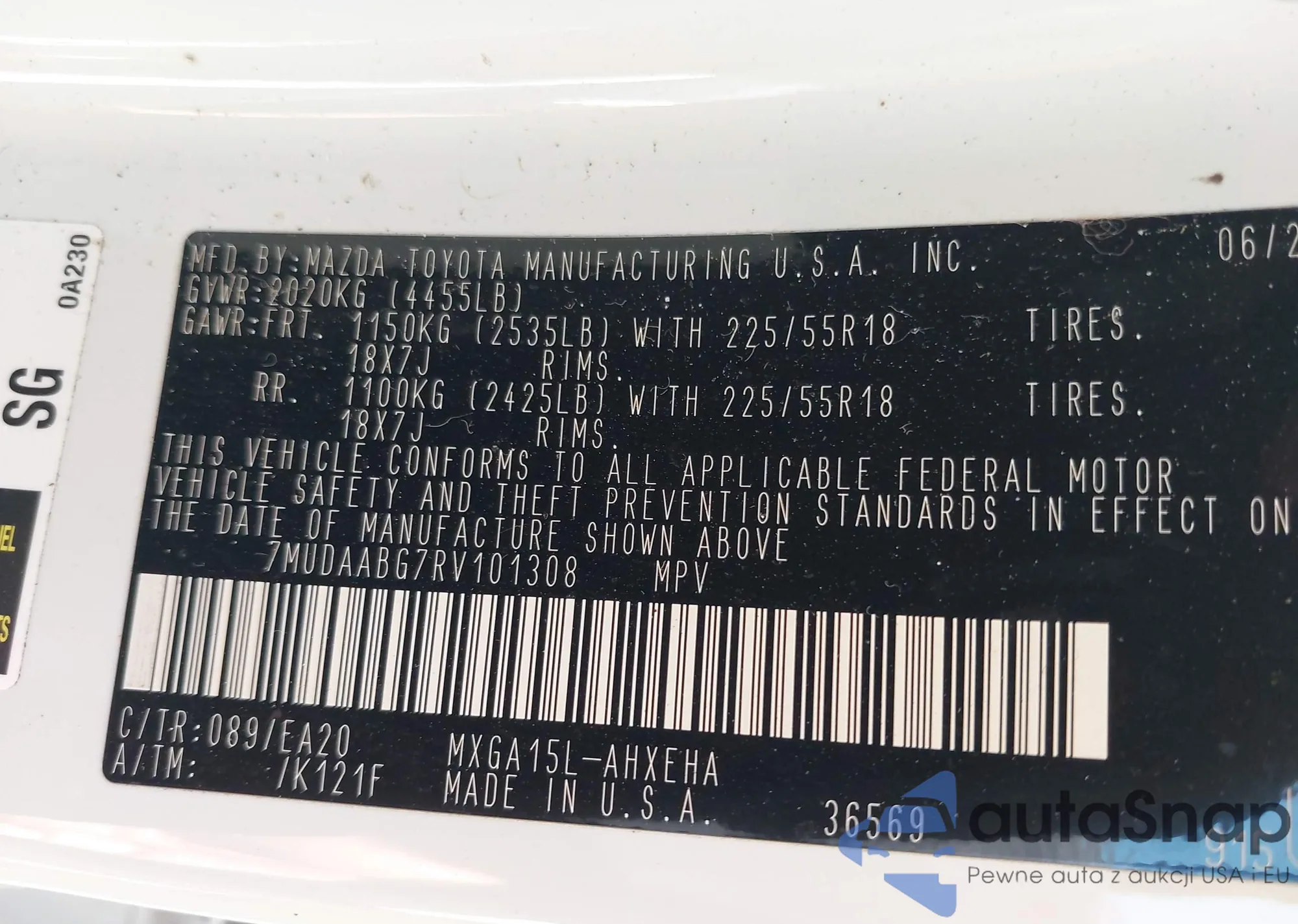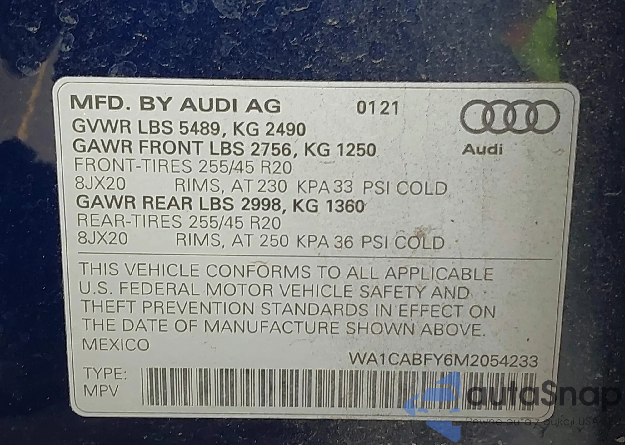 LOT: 42406212 VIN: WA1EECF33N1048355