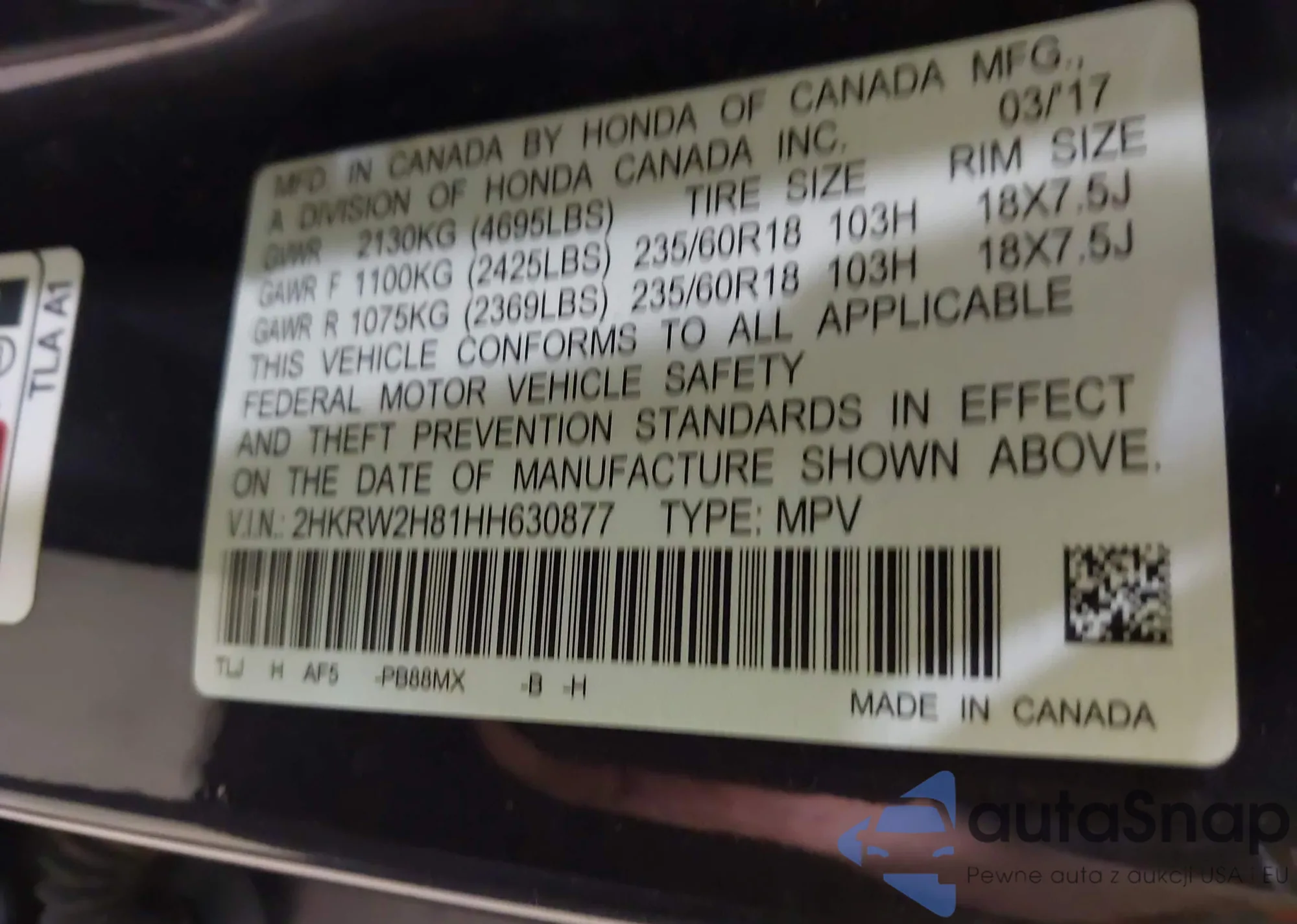 • VIN 2HKRW2H81HH630877